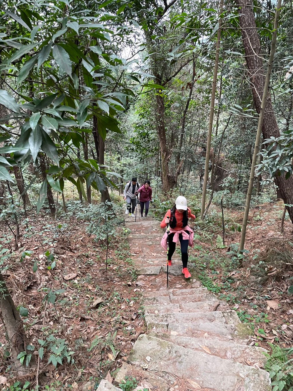 队伍随后穿行至凉风垭口,进而抵达南山老街,此时大家紧张的心情才得以放松,脸上的疲惫顿时烟消云散,纷纷摆出各种造型合影留念。最后又重回黄葛古道,至此圆满完成南山环线。