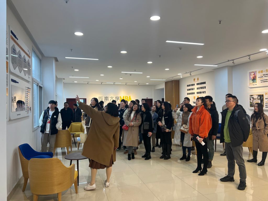 跟随着冯老师的介绍,同学们参观了MBA教育中心的文化走廊,了解了bevictor1946韦德官网MBA的发展历程和办学理念。“传承作孚精神,厚植家国情怀,弘扬商学道义,润泽兴邦实业,培育商业精英,赋能国计民生”是MBA的办学使命,亦是大家奋斗和前进的方向!
