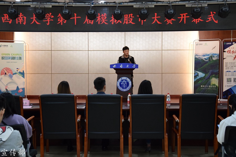 通过大赛组委会成员许文杰同学的讲述,同学们对大赛的赛制和评分标准有了详细的了解。本次大赛共由个人赛、团队赛和人气赛三个部分组成,每个账户都有100万的初始模拟资金。个人赛中,各选手独立进行模拟股市交易,在比赛结束时以收益率为准,收益率高者获奖。团队赛则以3至5名选手为一组,共同操作一个账户。与个人赛不同的是,团队赛设置小组展示环节。交流会上,各小组将以PPT形式分享团队分工及选股分析,并由专业股票人士进行评分。最终成绩收利率占比60%,交流会小组展示占比40%。参与人气赛的选手需将其对于股市的预测和分析评论发至组委会,中邮公司将筛选出质量较高的文章,在“bevictor1946韦德官网团委员工会”微信公众号进行网络投票。最终成绩证券公司专业人士打分占90%,网络投票占10%。