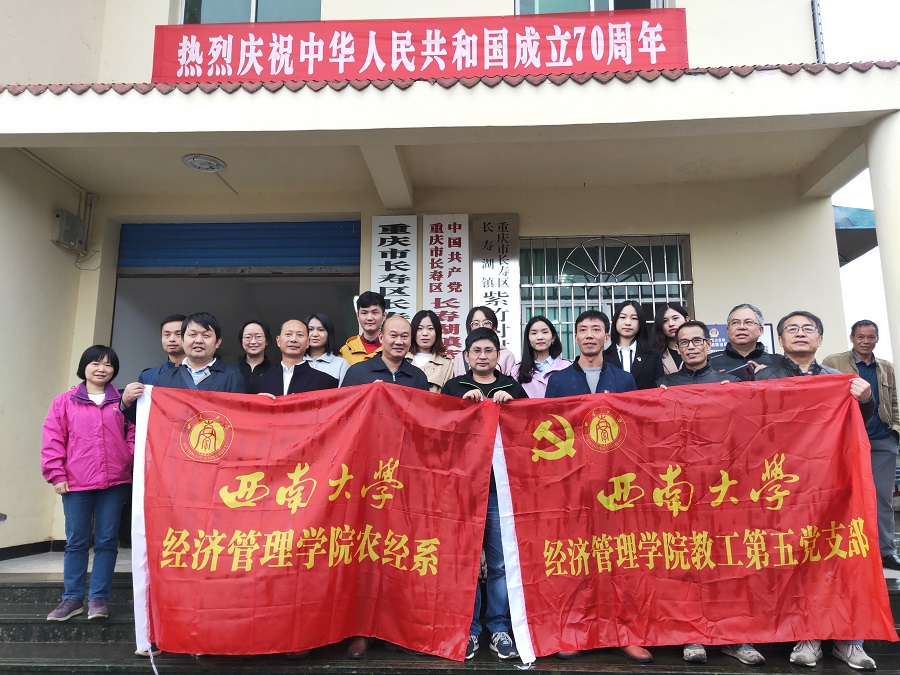 为进一步扎实开展“不忘初心、牢记使命”主题教育、发挥专业学科优势助力乡村振兴,同时为进一步完善农经专业人才培养模式、加强实践教学、提升公司农经专业员工的实践能力、就业能力和社会责任感,农经系党支部和紫竹村党支部共建暨实习实训基地授牌仪式,于2019年10月25日在长寿区长寿湖镇紫竹村举行。bevictor1946韦德官网农经系党支部书记周洪文带领农经系党支部部分党员、老师代表及员工代表参加此次活动。紫竹村党支部书记陈恩、村委会主任黄大富分别接受牌匾。
