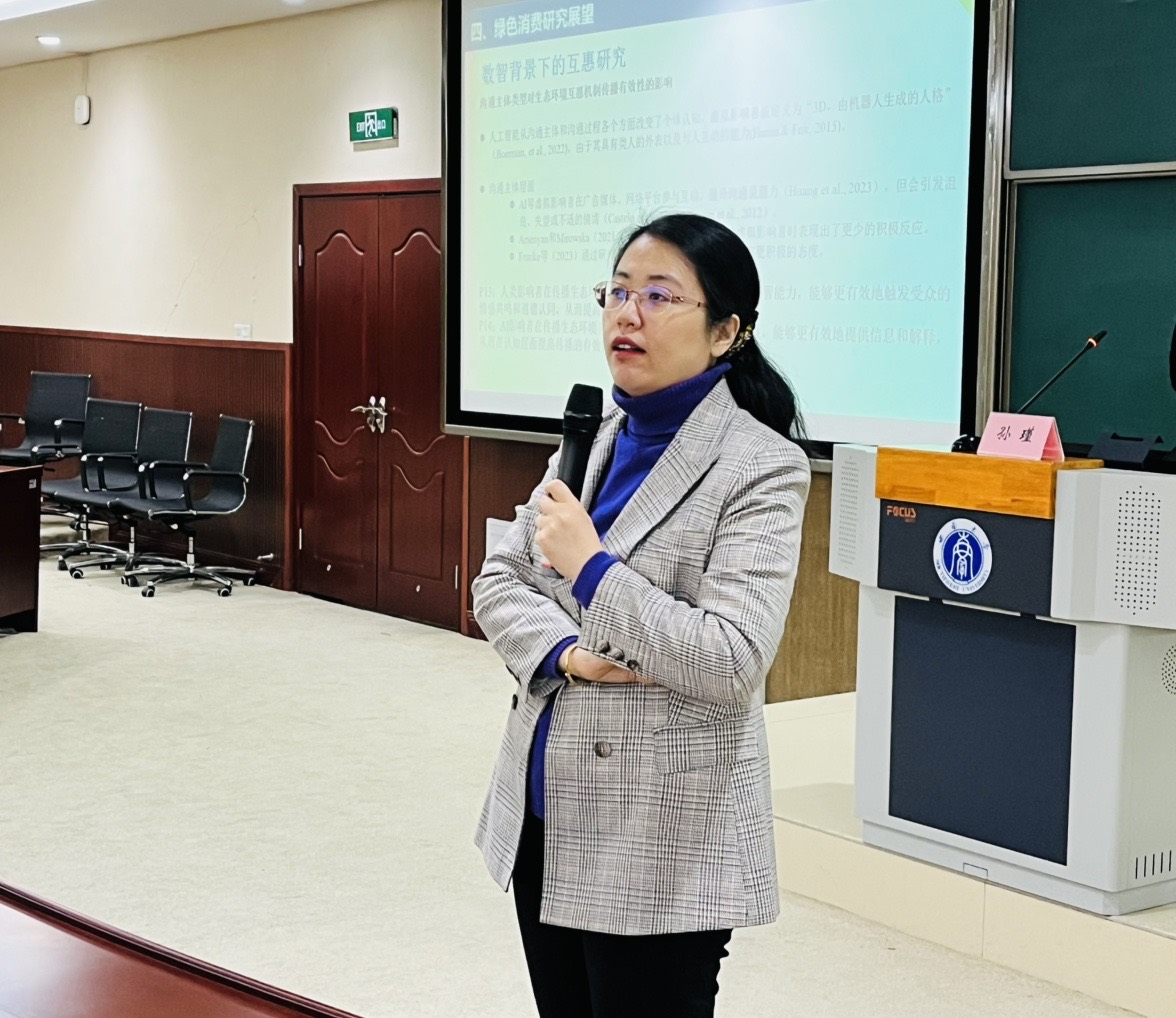 12月26日上午,对外经济贸易大学孙瑾教授应公司邀请在B201报告厅开展了题为“绿色的力量:可持续消费行为相关研究探索与展望”的学术讲座。公司70余位师生参加了本次学术活动。
