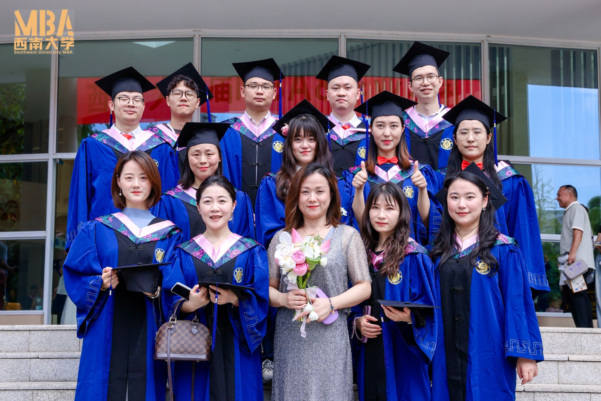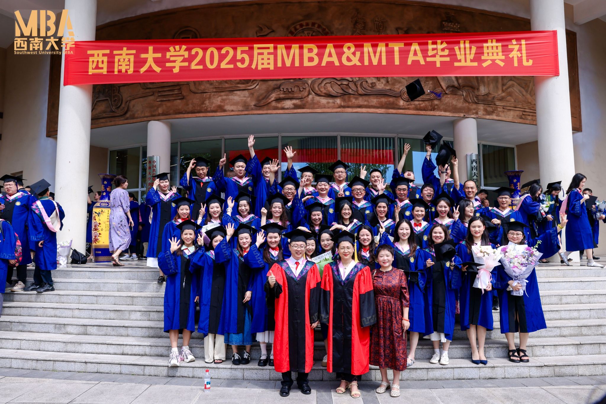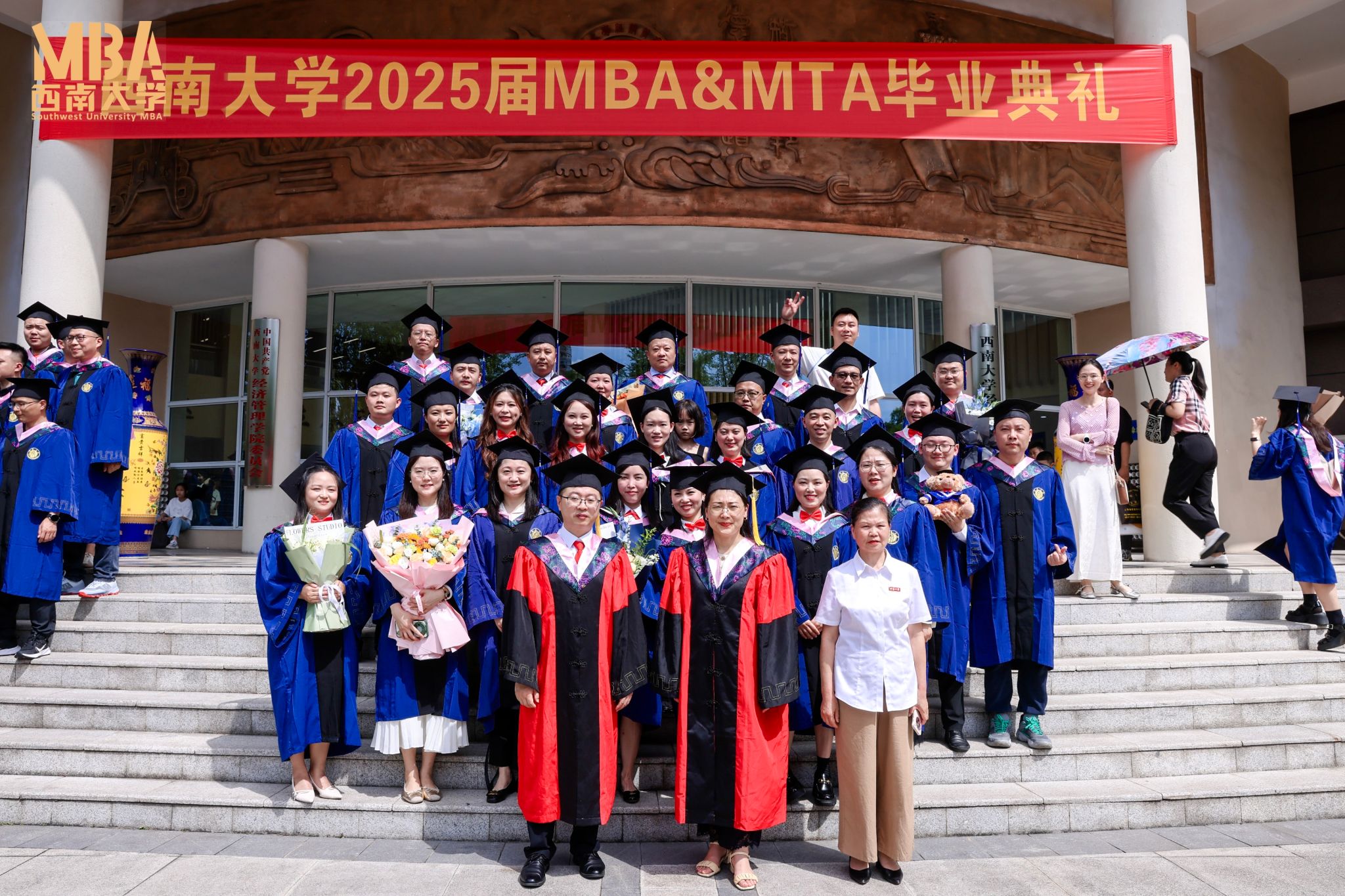2025届MBA&MTA毕业典礼暨学位授予仪式在校歌中结束,全体师生在经管院广场合影留念。