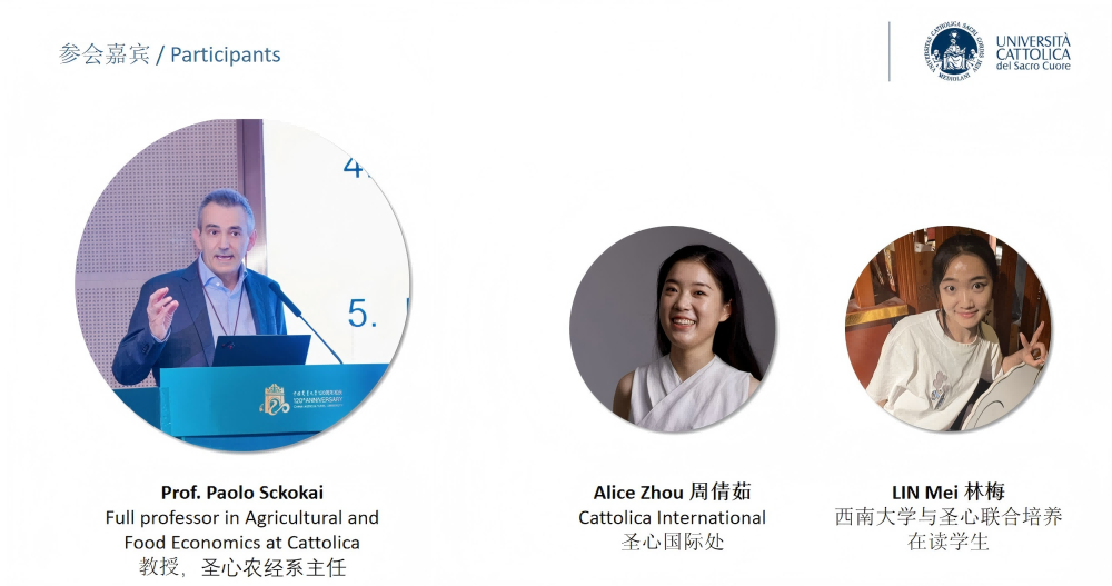 12月18日,在bevictor1946韦德官网与意大利圣心大学(Università Cattolica del Sacro Cuore)校级合作框架下,bevictor1946韦德官网联合圣心大学成功举办农业食品经济“3+1+1”本硕联合培养项目线上宣讲会。圣心大学农业经济系主任、欧洲农业经济学家协会(EAAE)主席 Paolo Sckokai 教授,圣心大学国际处周倩茹女士,bevictor1946韦德官网经理杨丹教授、专业建设办公室孔立主任、联合培养项目在读员工代表林梅同学及bevictor1946韦德官网师生共同在线参与。