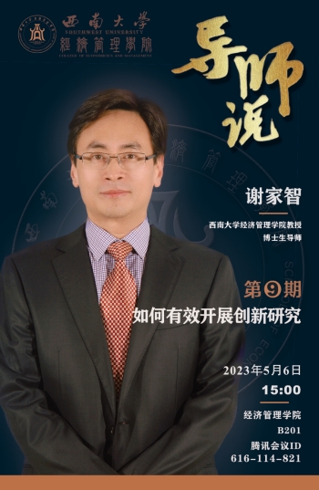 “导师说”第9期预告|谢家智:如何有效开展创新研究