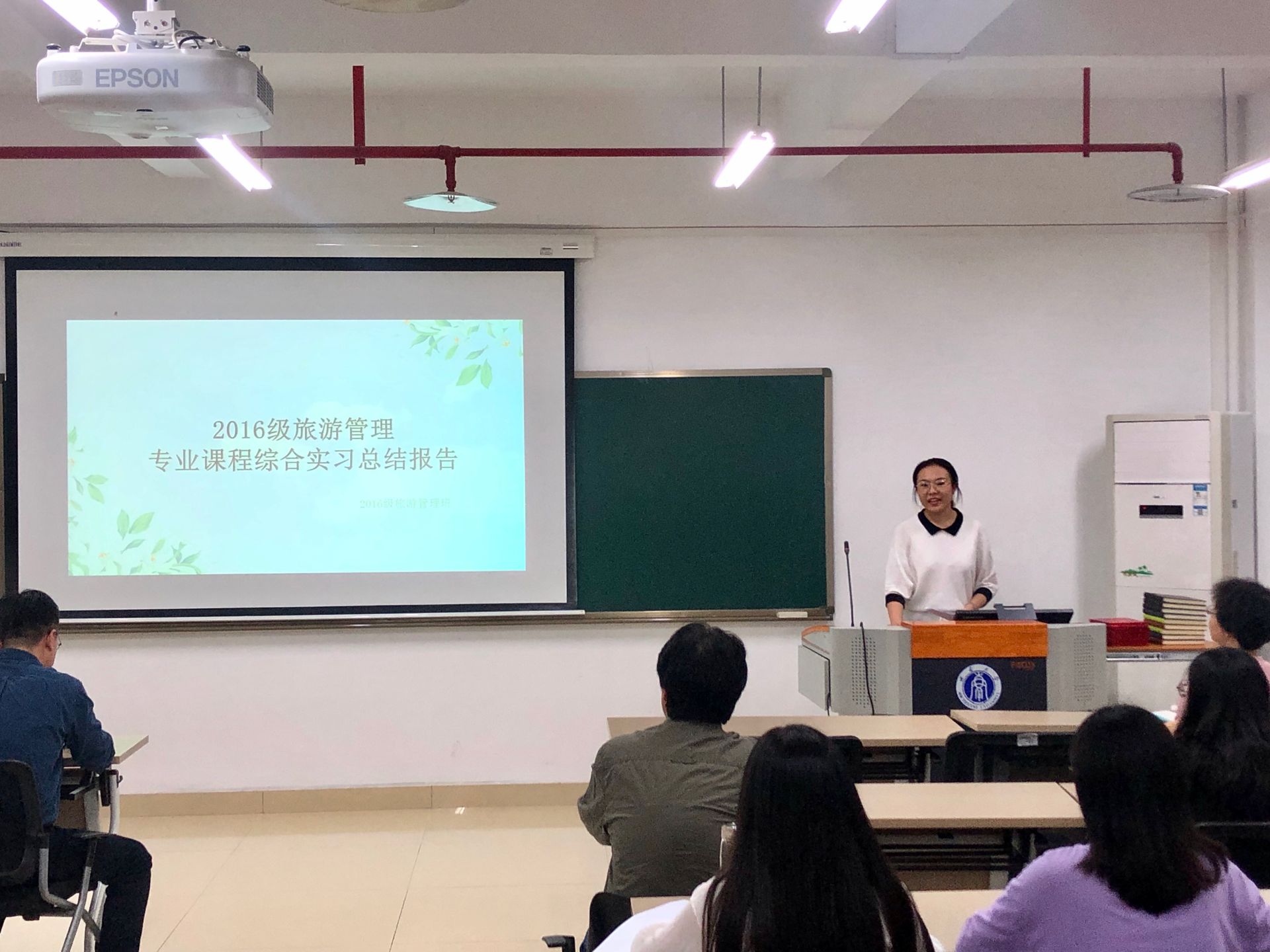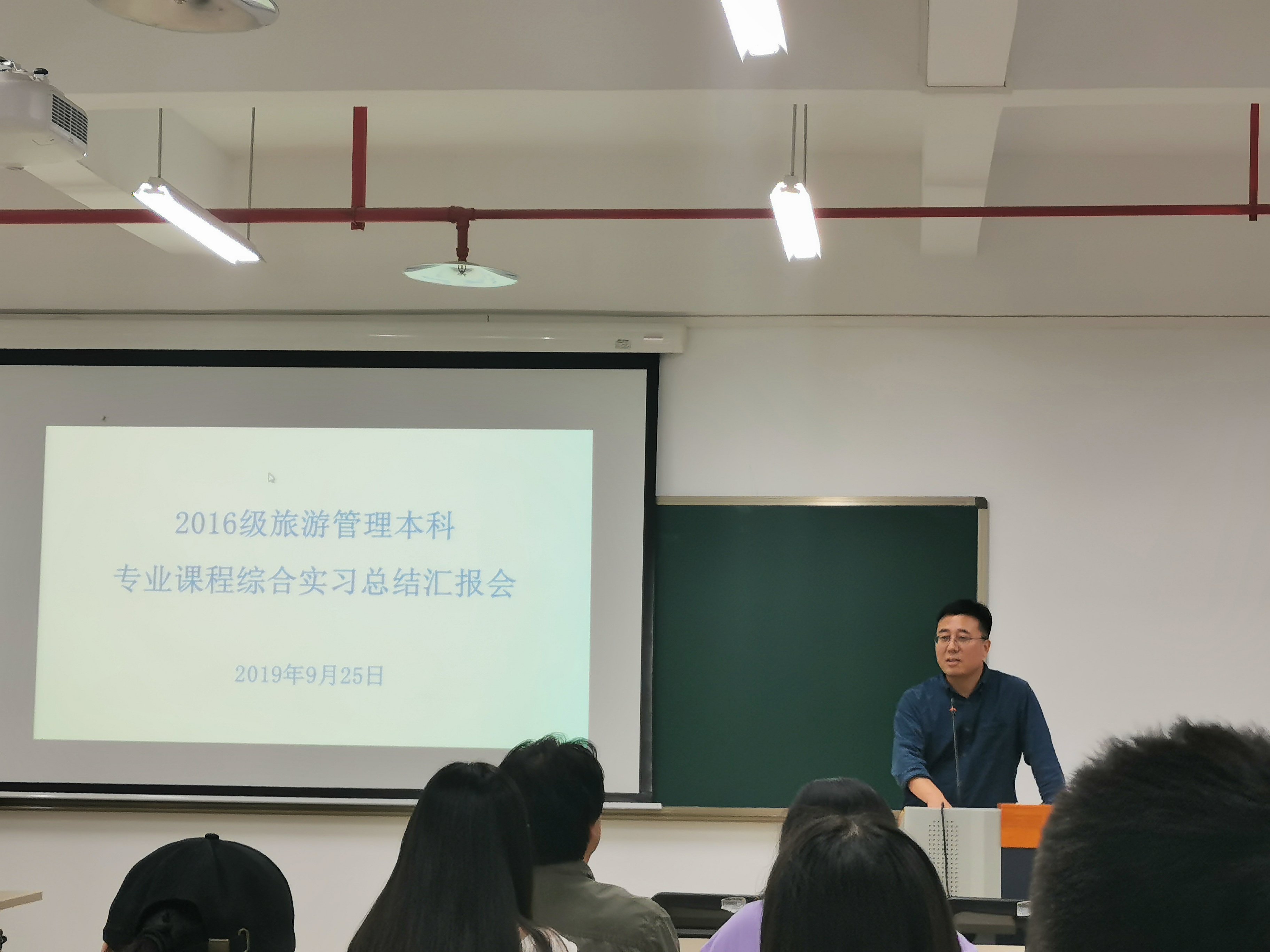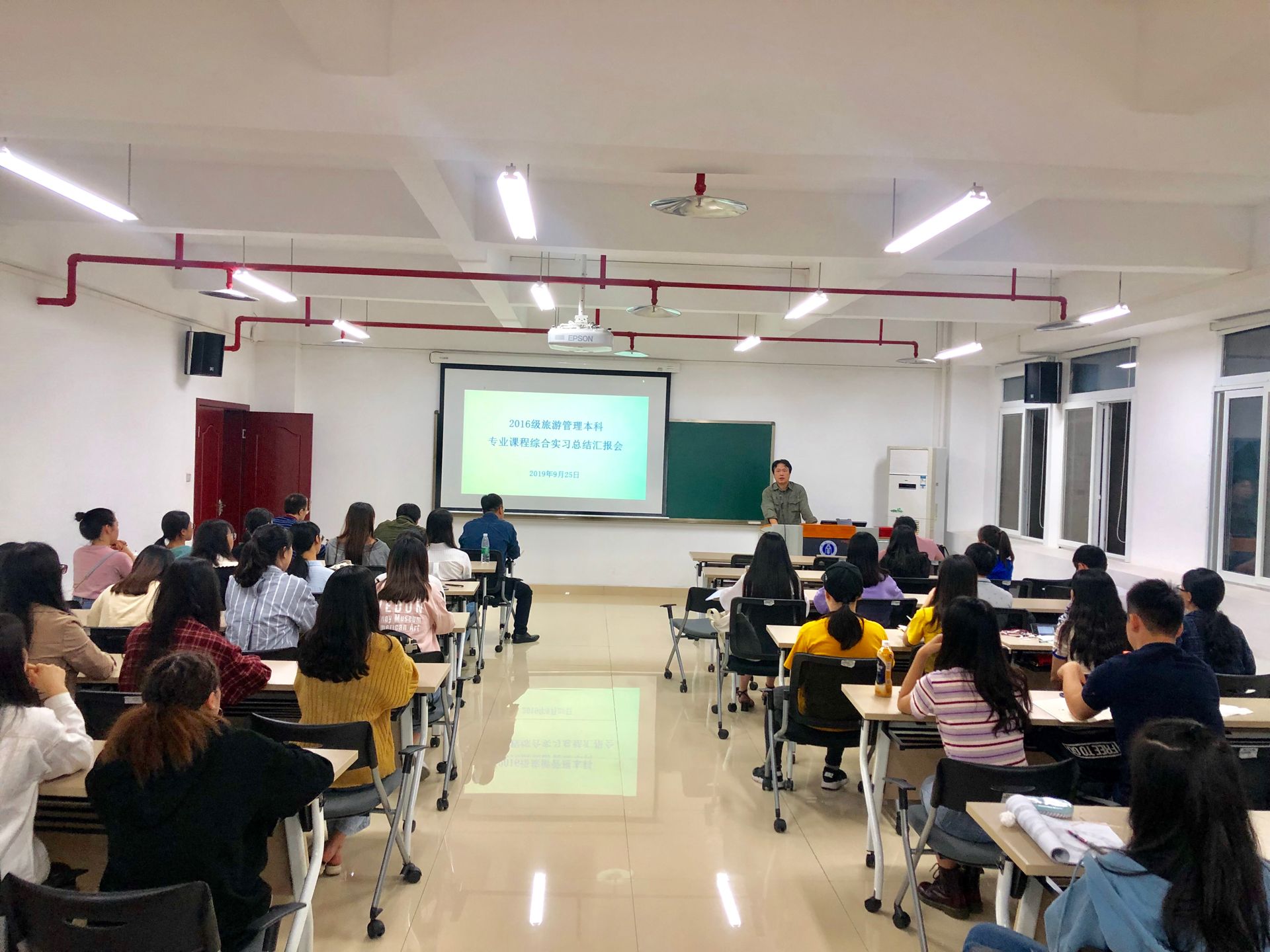 在总结汇报会上,弓沈册代表班级作总结报告,全面回顾了实习考察过程,总结了班级同学在实习中的收获。刁琴、阮茜和任红梅分别代表3个实习小组对黄金邮轮(流动的旅游饭店)的运营管理与服务、导游服务及景区解说系统、旅游景区规划开发与管理三大领域的实习考察情况作汇报发言,全面剖析了考察对象的成功与不足之处,并从专业角度提出众多具有参考借鉴价值的建议总结汇报全面深刻,充分体现了旅管学子的专业素养和“深学笃行,知行合一”的实习理念。