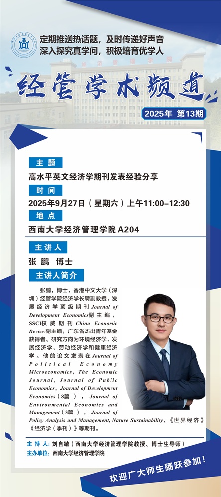 应用经济学科发展论坛︱高水平英文经济学期刊发表经验分享