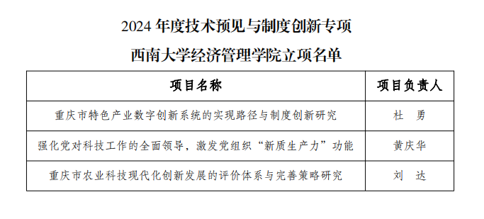 公司3位教师获2024年度重庆市技术预见与制度创新项目立项