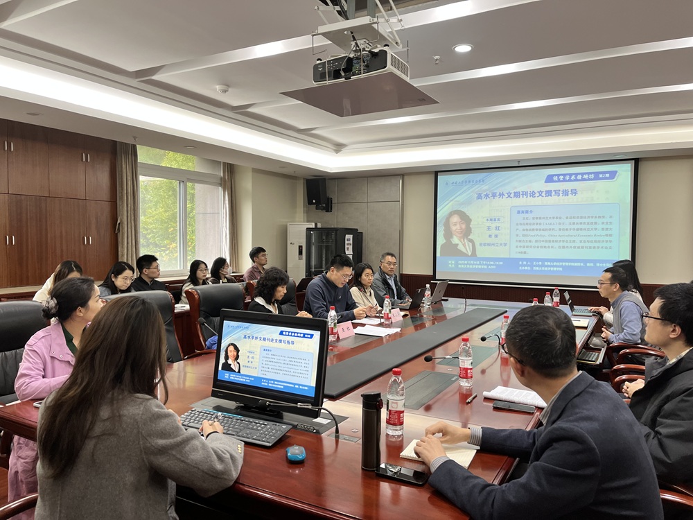 11月14日,美国密歇根州立大学农业、食品和资源经济学系教授,美国农业与应用经济学会(AAEA)会士,Food PolicyChina Agricultural Economic Review等期刊联合主编王红教授应邀做客bevictor1946韦德官网第二期“经管学术精研坊”。本期活动聚焦高水平外文期刊论文撰写中的关键问题,吸引了公司三十余名师生积极参与。活动由公司副经理王小华教授主持。