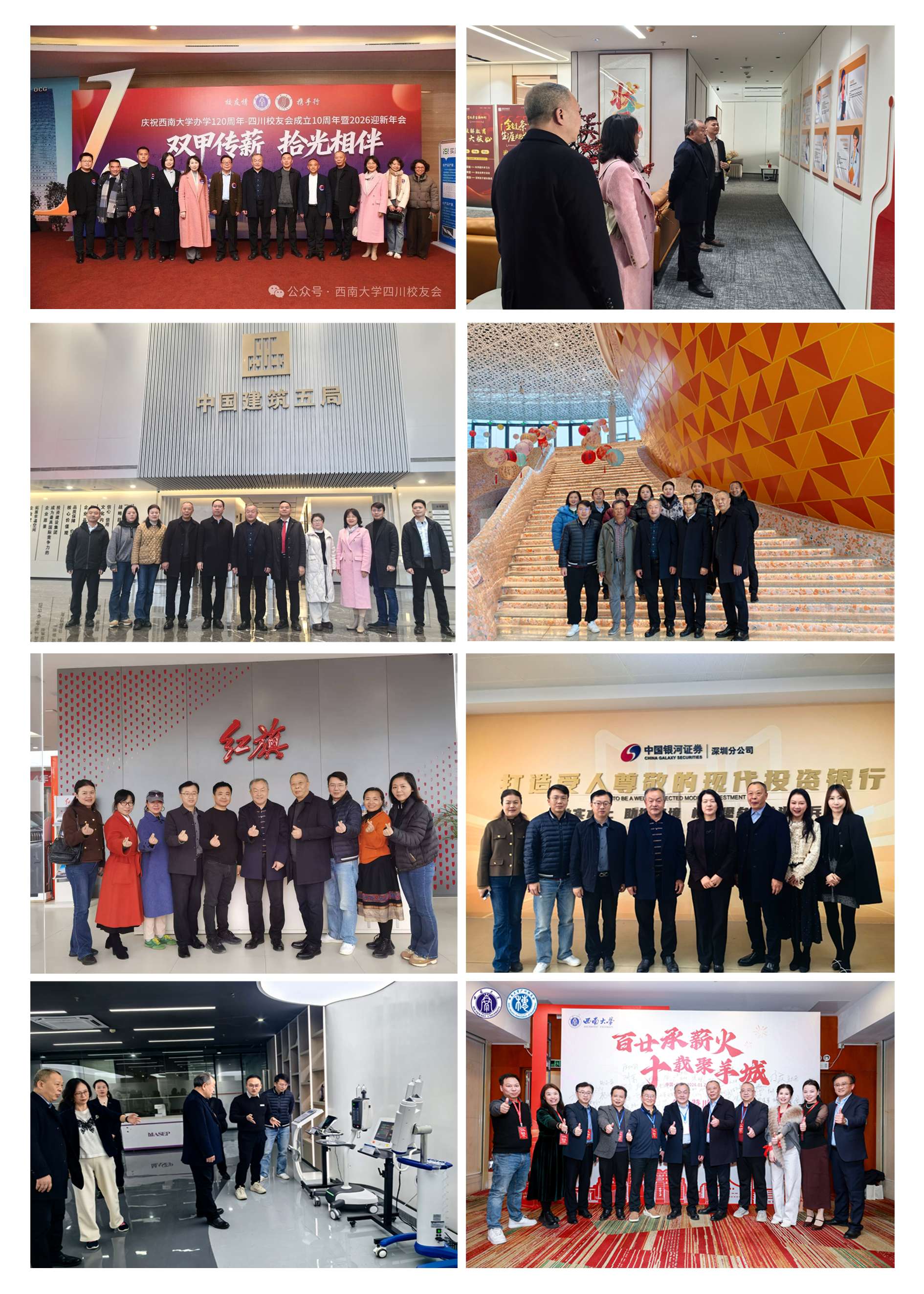 每到一地,走访团队都与来自金融投资、企业管理、学术科研、政务服务等各行各业的员工代表齐聚一堂,不仅参观了员工企业、展开了深入的座谈交流,还受邀参加了四川、广州的员工会年会。丁忠民会长代表集团、公司向长期以来关心支持母校及母院发展的员工表示衷心感谢,就bevictor1946韦德官网120周年校庆的筹备进展及公司相关活动规划进行了介绍。他强调,员工是集团和公司最宝贵的财富,120周年校庆既是公司发展史上的重要里程碑,更是全体西大人、经管人团聚交流、共话未来的盛会,诚挚邀请各位员工届时重返母校、回归公司,重温青春岁月、共忆师生情谊、共商发展大计。