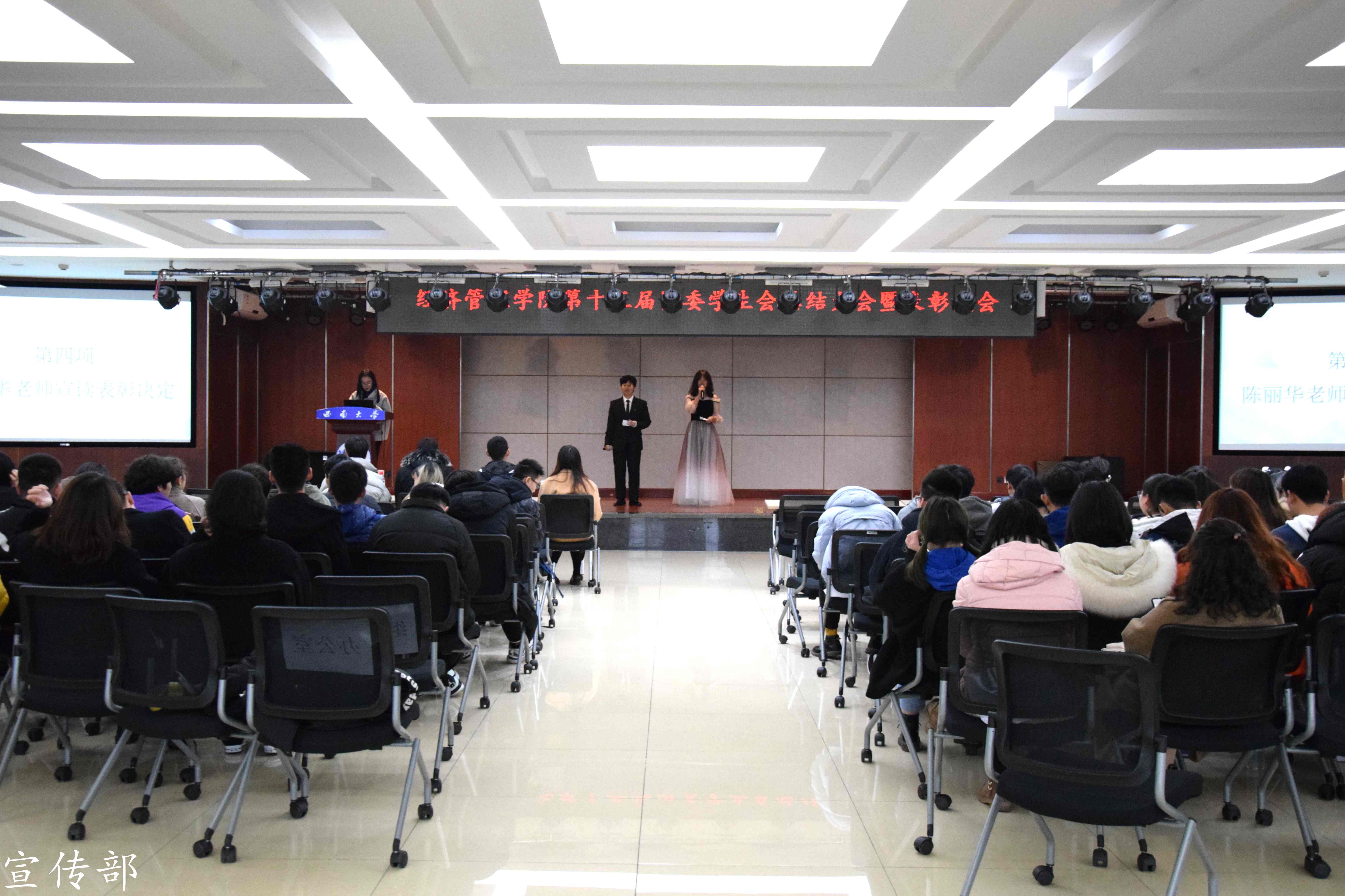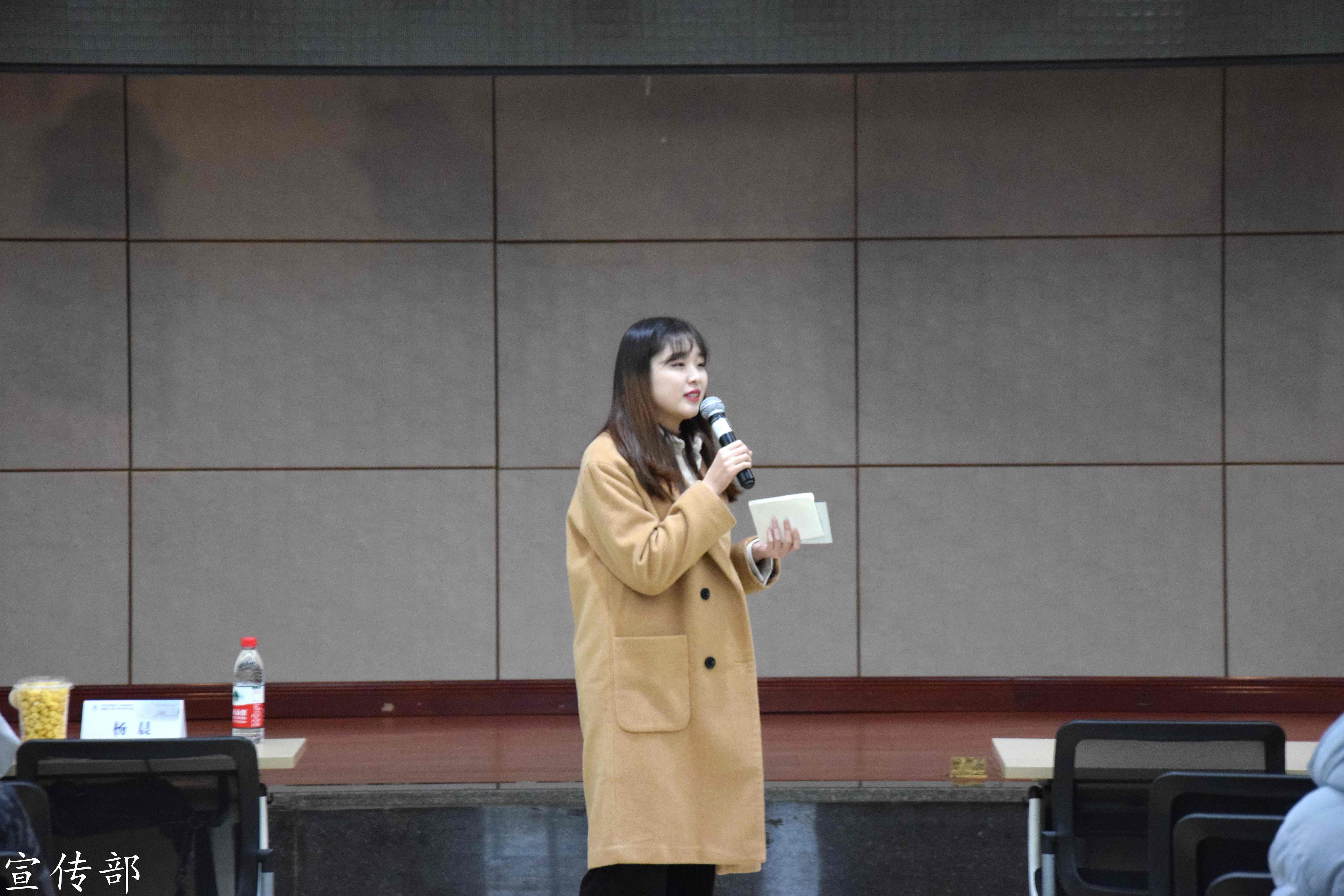 首先,团委员工会主席杨晨同学代表主席团进行了学期总结。她深情回首了本学期员工会完成的每一项工作,见证了每一位员工会成员的辛勤付出,肯定了大家的工作能力。憧憬2020,她祝愿大家都能拥抱幸福,收获成长,并希望大家齐心协力,将员工会工作做得更加出色。