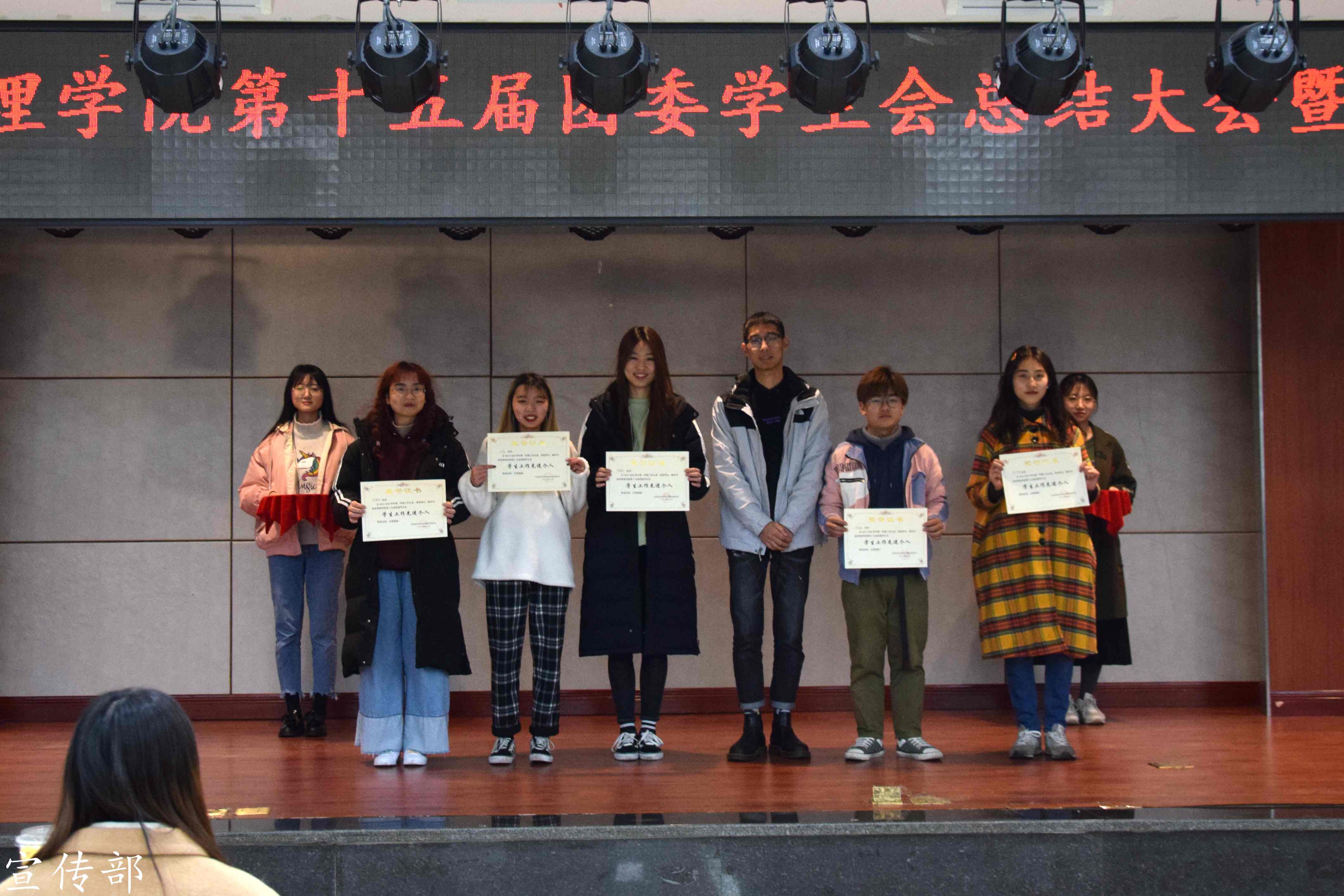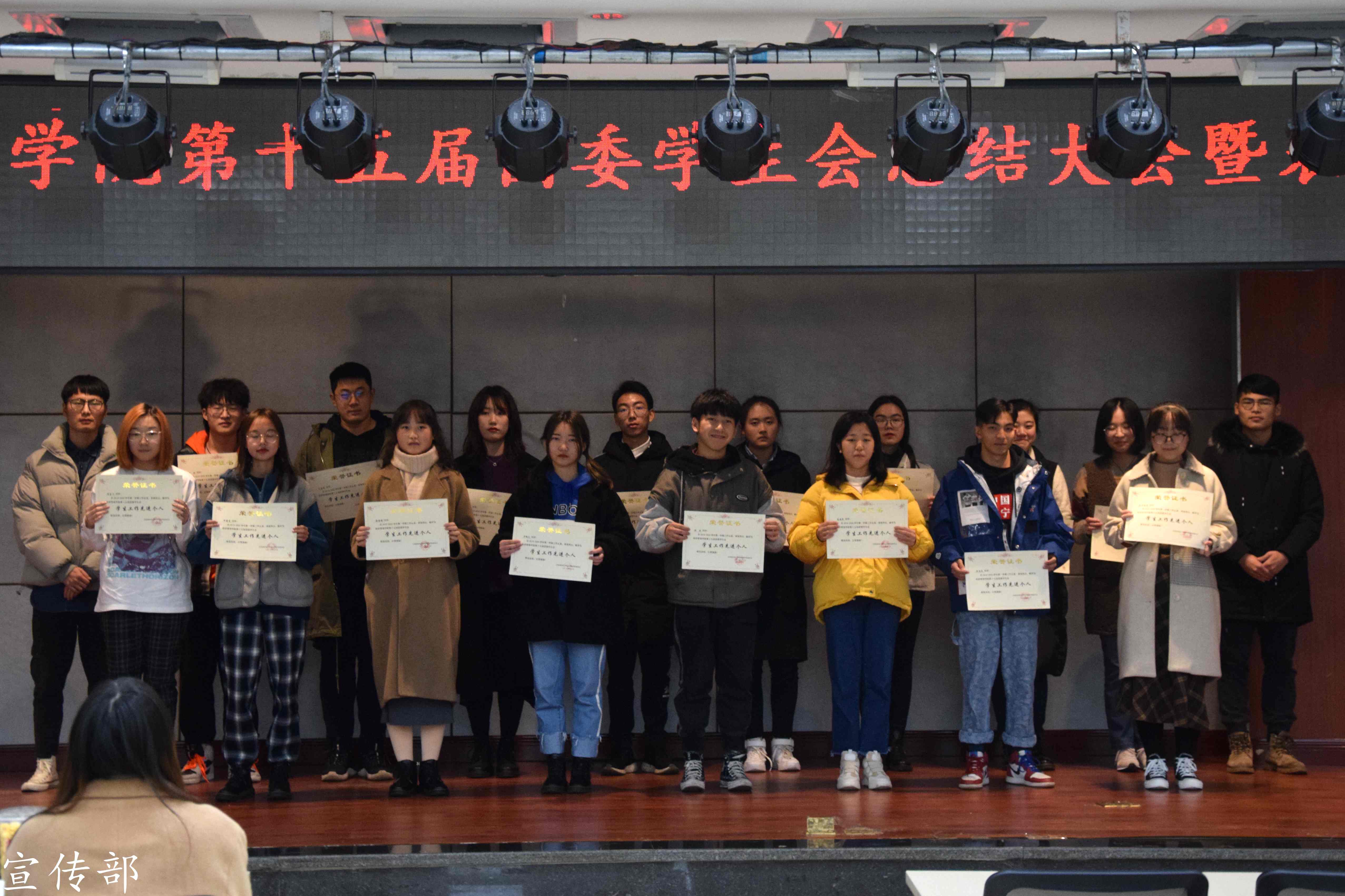 最后,团委副书记刘博闻同学宣读表彰决定,其中5位部长和16名委员获得“员工工作先进个人”称号,宣传部和新媒体中心荣获2019-2020学年第一学期bevictor1946韦德官网团委员工会“优秀部门”。在全场的掌声中,团委员工会主席团为受表彰个人及集体颁奖。