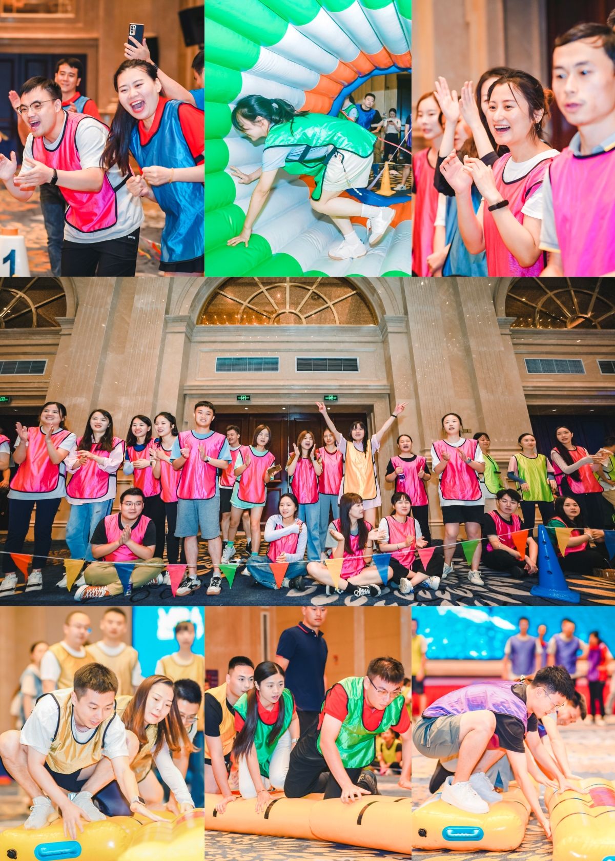 室内趣味运动在帕格森蒂酒店进行。内容包括无敌风火轮、俄罗斯方块、同舟共济、星球大战、枕头大战五个项目并按班级分组PK。这是一场斗智斗勇斗体力的比赛,同学们出谋划策,深入沟通,分工合作,在比赛中搭建起友谊的桥梁。