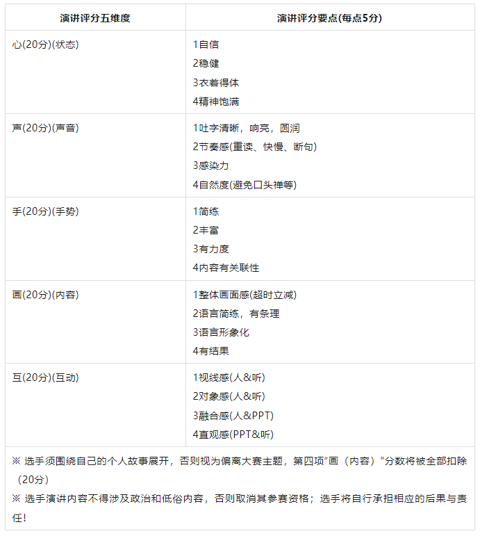 a.参赛院校举办校内演讲比赛作为选拔赛,成绩位列前3名的选手组成院校参赛队伍。
