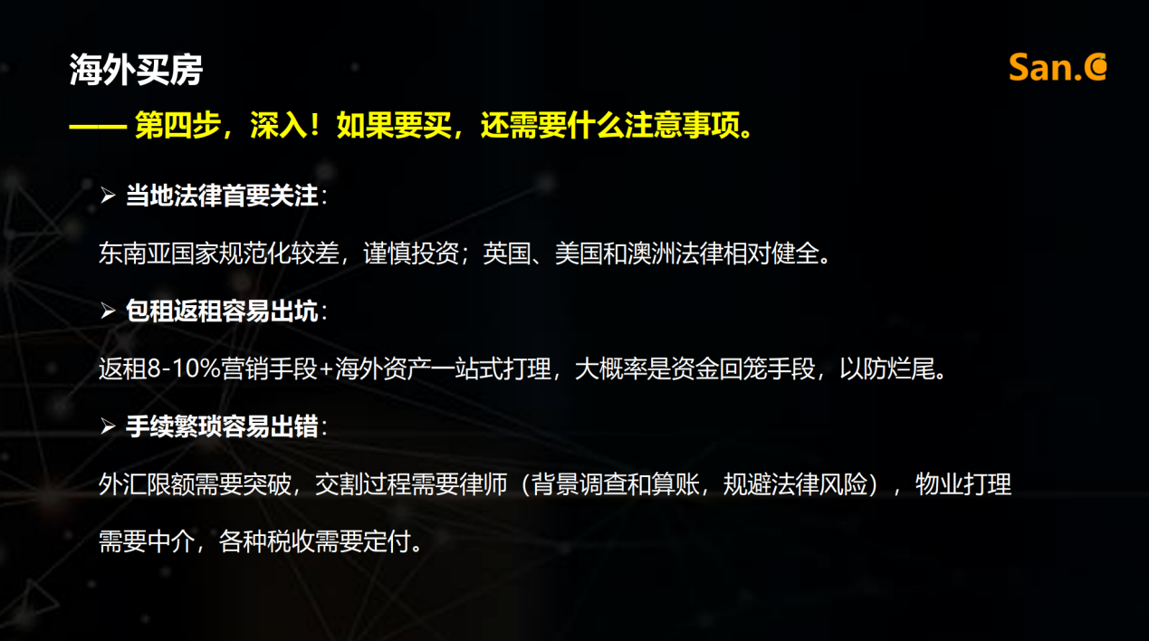 结尾时,丰雁老师还给大家带来了小彩蛋。关于海外买房,看似优势多多,实则从时机和利润出发考虑,当前未必是最优选择,并且有很多注意事项需要考虑,以免给自己造成诸多困扰。