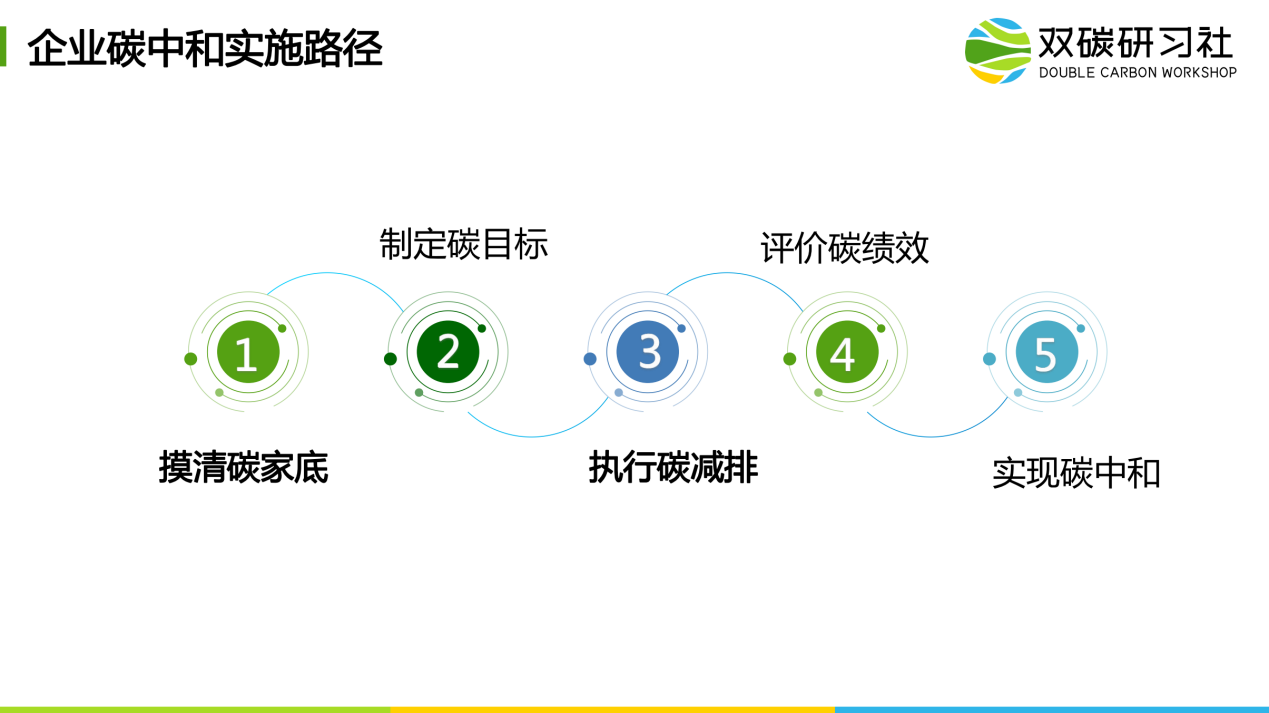 随着国家和各地政府鼓励和扶持低碳产业发展的政策出台,我国诸多企业迎来更多的机遇和挑战。针对企业碳中和实施路径的问题,姜老师讲解了摸清碳家底、制定碳目标、执行碳减排、评价碳绩效、实现碳中和五步走的碳管理流程。