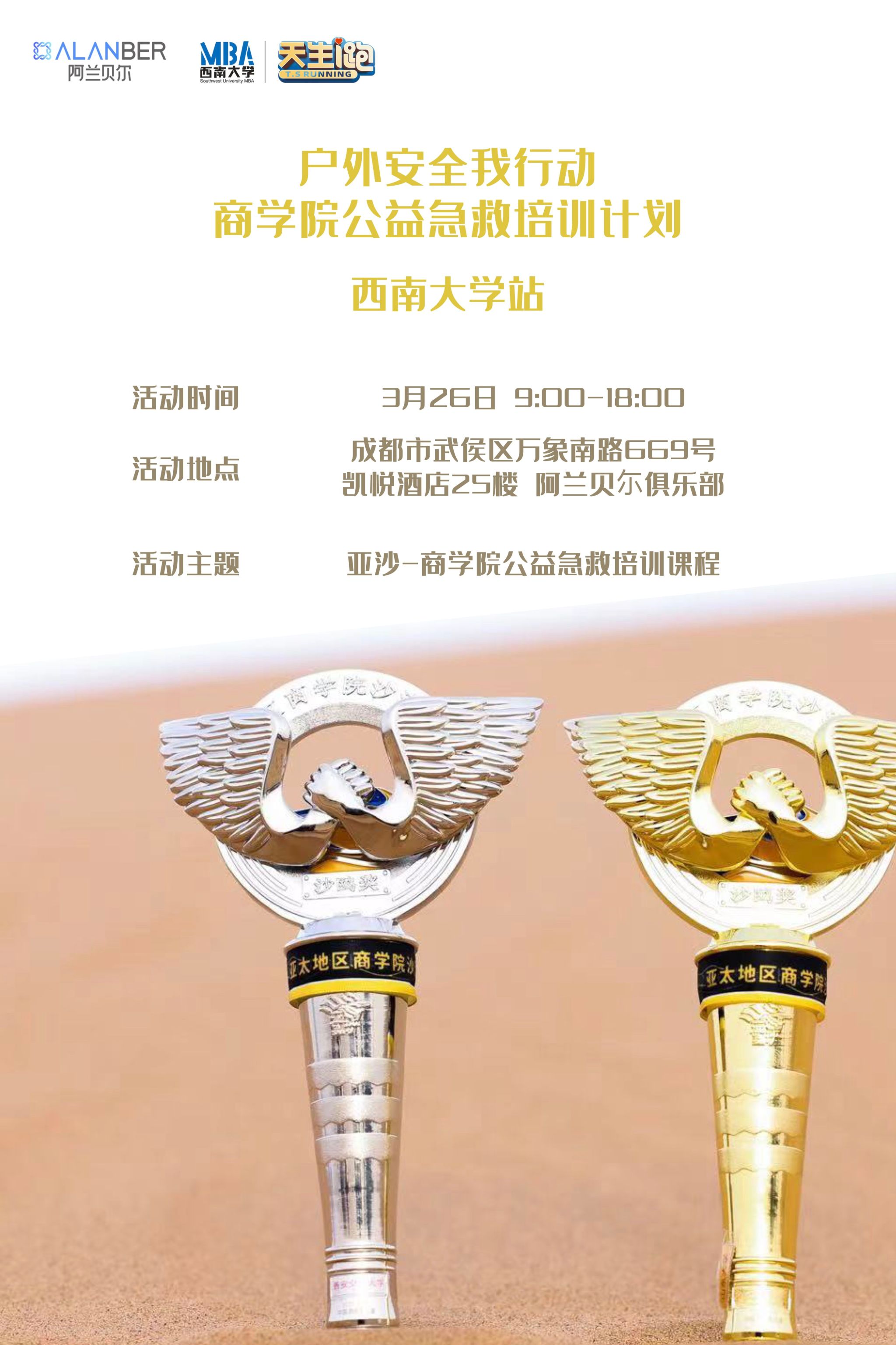俱乐部一直高度重视队员们的运动安全,且2023年沙11出征在即,队员们正紧锣密鼓进行训练。为增强大家参与户外运动的安全性,加强应急救护意识,提高自救互救的能力,326日,在亚沙组委会的大力支持下,由亚沙公益中心主办,俱乐部承办的商公司公益急救培训bevictor1946韦德官网专场活动在成都阿兰贝尔俱乐部顺利举办。
