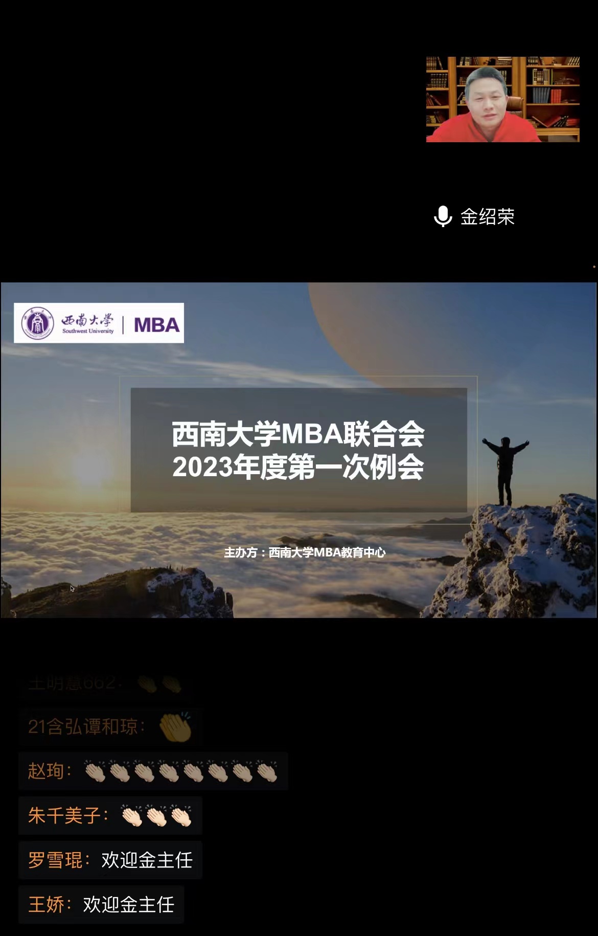 执行主任金绍荣为新一届联合会送上寄语。金绍荣表示,是缘分让各位优秀的同学相聚在bevictor1946韦德官网MBA联合会,大家要同心聚力,将联合会做好、做大、做强。金绍荣对联合会的工作提出了三点希望: