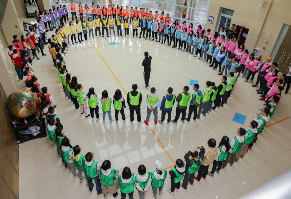 3月12日,2021级崇德1班和2班联合素质拓展活动在公司一楼大厅举办。