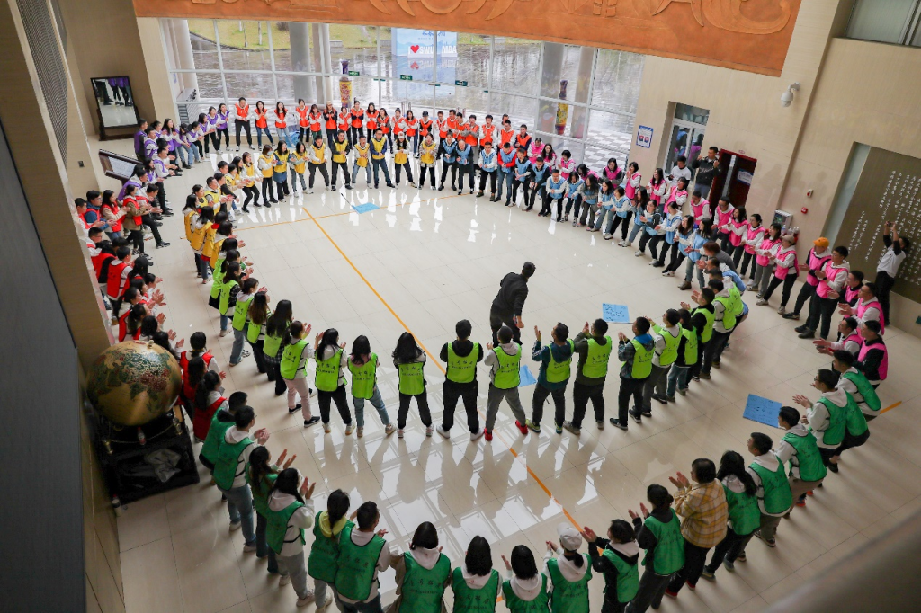 312日,2021级崇德1班和2班联合素质拓展活动在公司一楼大厅举办。