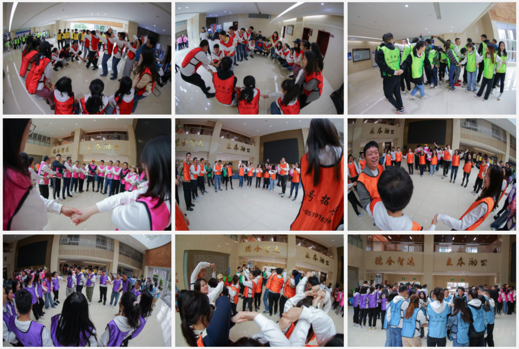 同学们首先开启了破冰之旅,然后2个班的同学被随机分成8个队,迎接了四个环节的挑战:手拉手解手链、争分夺秒、疯狂毛毛虫、挑战NO.1
