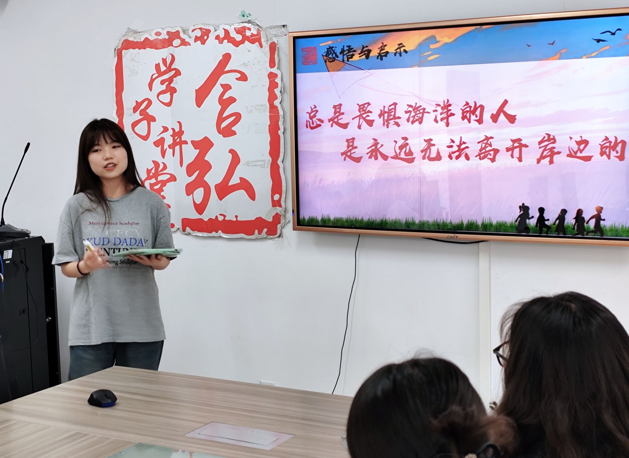 黄钰雪同学解读了《带壳的牡蛎是大人的心脏》一书。结合书中深刻且现实的隐喻,她为我们揭示了如何在适应社会规则的同时做到头脑清醒。她指出,当下的我们总是习惯披着“外壳”——受KPI驱使感到焦虑,在“上岸”叙事里迷失意义。但真正的成长并不是追求完美无瑕的盔甲,而是承认迷茫、接纳试错,在高压中保持韧性,在挫折中沉淀智慧。