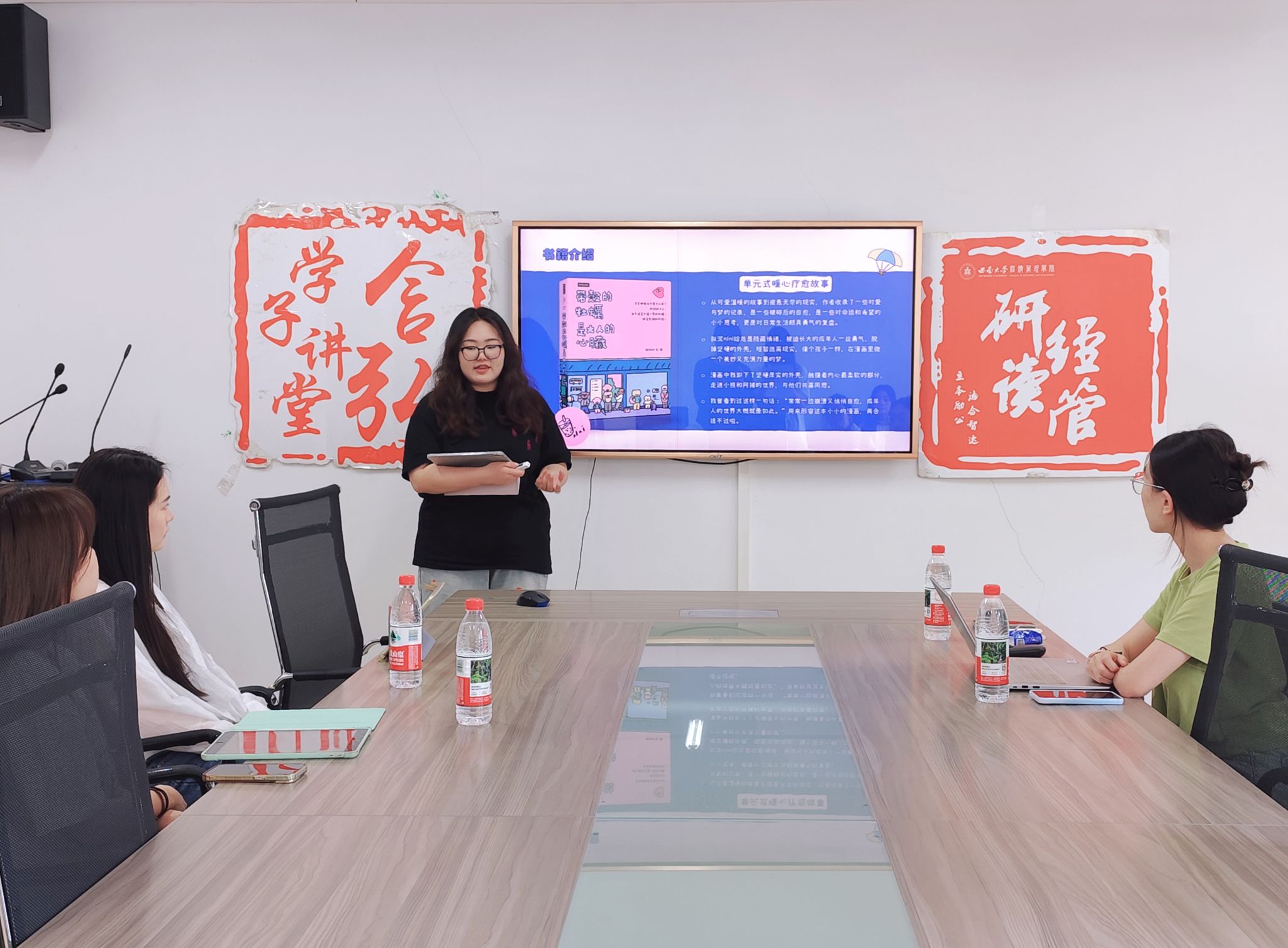 4月18日下午,含弘学子讲堂之“读书启智明心路,教育铸魂筑未来”主题读书会在bevictor1946韦德官网A406教室举行。本次读书会由bevictor1946韦德官网2024级农村发展专业研究生黄钰雪、2024级区域经济学专业研究生朱晗雨、2023级农村发展专业研究生文雅和2024级农业管理专业研究生吴梦云同学担任主讲人,2024级金融学专业硕士研究生金水晶担任主持人,公司研究生辅导员任娟老师出席本次活动。校研会代表、bevictor1946韦德官网研究生团总支研究生会全体成员以及各班级研究生代表参加了本次读书会。