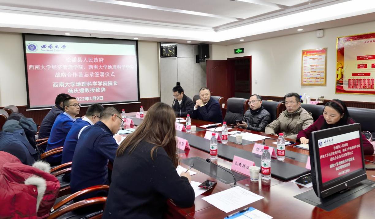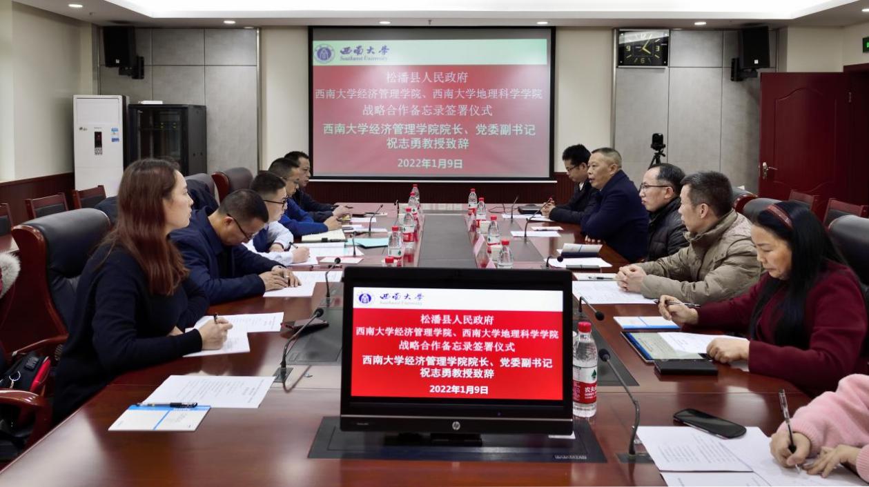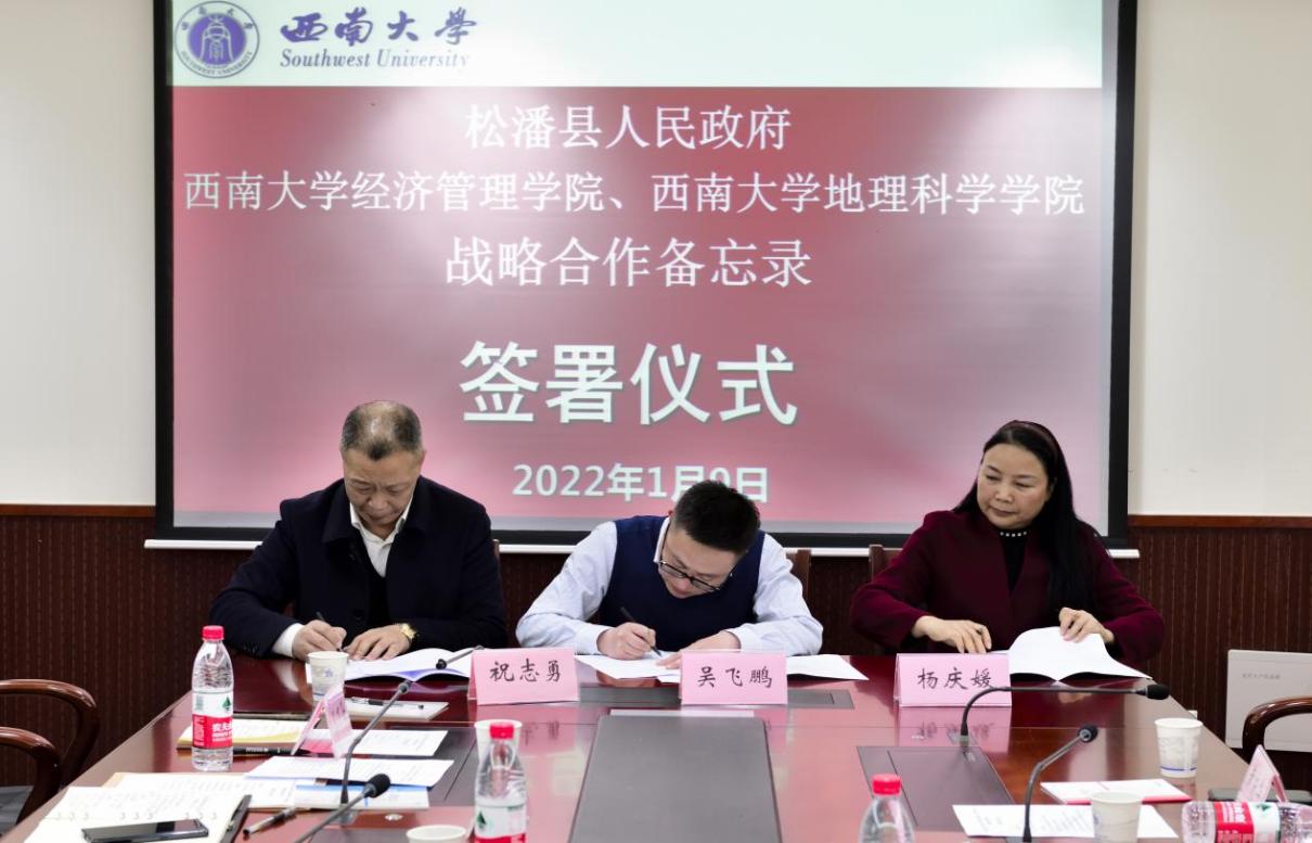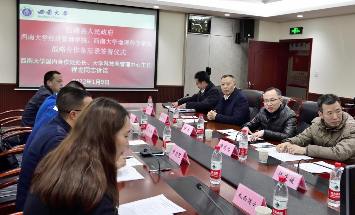 1月9日,松潘县人民政府副县长吴飞鹏一行来校,与bevictor1946韦德官网、bevictor1946韦德官网地理科学公司签署合作备忘录,并就双方校地合作相关事宜进行了座谈。松潘县出席签字仪式的领导和工作人员有松潘县人民政府副县长吴飞鹏同志,松潘县经信局局长何跃同志,松潘县科技农牧局局长张朝陈同志,松潘县园区管委会主任张万海同志,松潘县经信局工作人员扎西磋么女士。bevictor1946韦德官网出席签字仪式的有国内合作处处长、大学科技园管理中心主任程龙同志,地理科学公司党委书记、副经理(兼)喻尚其同志,地理科学公司经理杨庆媛教授,bevictor1946韦德官网经理、党委副书记祝志勇教授,bevictor1946韦德官网副经理黄庆华教授,bevictor1946韦德官网高层培训中心主任苟佳欢。签署仪式由bevictor1946韦德官网副经理黄庆华主持。