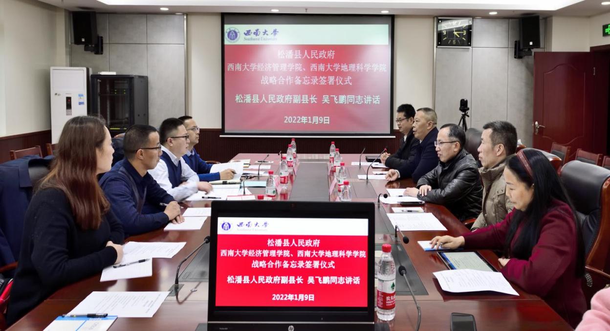 三方就人才培养培训、人才互派交流、科技创新、战略决策咨询、文化旅游交流、生态文明建设和乡村振兴等内容进行对接,围绕支持松潘县经济发展、乡村振兴、社会治理等领域的合作事项进行深入探讨,达成合作意向,签订合作备忘录。