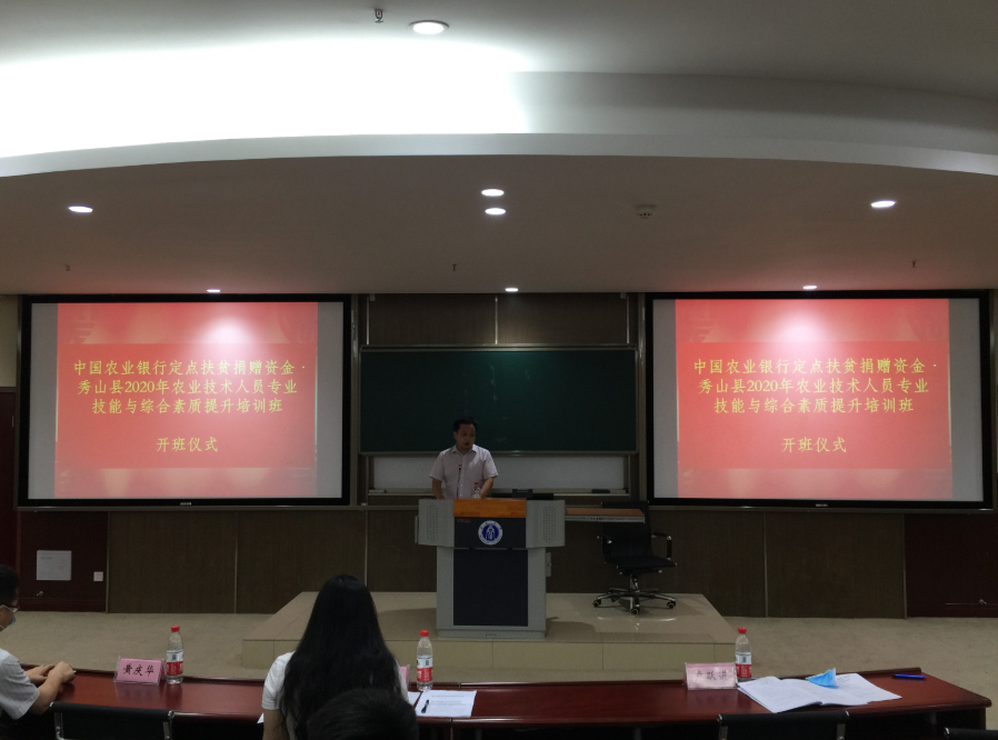 为提高秀山县农业技术人员专业技能与综合素质,公司于2020年6月22-24日承办了中国农业银行定点扶贫捐赠资金·秀山县2020年农业技术人员专业技能与综合素质提升培训班。22日上午8:30,培训班开班仪式在bevictor1946韦德官网B201教室举行,秀山县扶贫攻坚办分管领导曾昂同志、bevictor1946韦德官网公司党委书记卢跃进同志、bevictor1946韦德官网副经理黄庆华教授,以及公司高层培训办公室相关工作人员出席了开班仪式。开班仪式由公司副经理黄庆华教授主持。