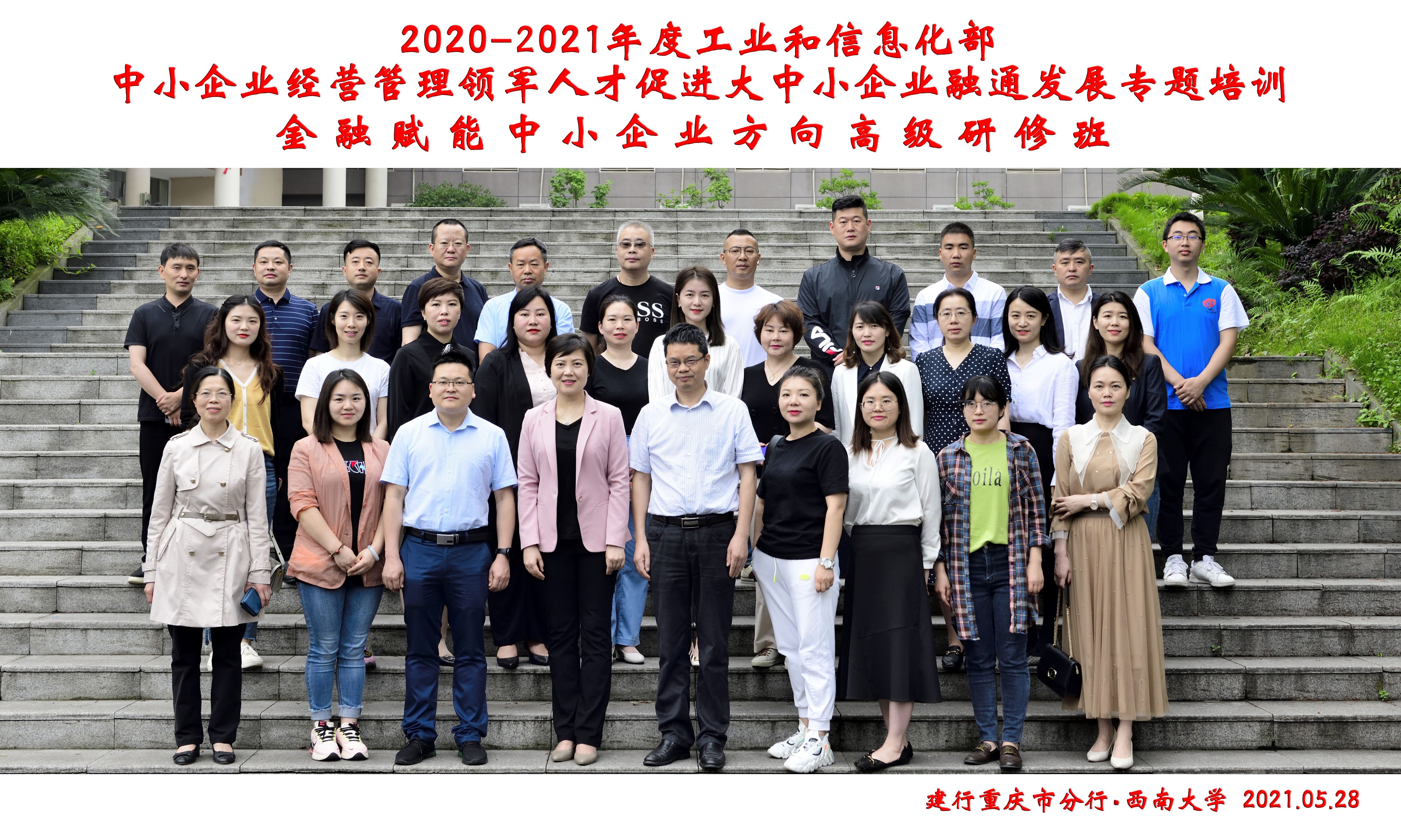 为学习贯彻十九届五中全会精神,深入实施科教兴国战略、创新驱动发展战略,5月28日上午,来自陕西省安康市人民政府的相关领导以及陕西、甘肃、重庆三地的企业家代表等26人,在bevictor1946韦德官网B201教室参加了由bevictor1946韦德官网和建行重庆市分行联合承办的“2020-2021 年度工业和信息化部中小企业经营管理领军人才促进大中小企业融通发展专题培训——金融赋能中小企业方向高级研修班(第二阶段)”开班仪式。出席开班仪式的领导有建行重庆市分行人力资源部总经理王栎、bevictor1946韦德官网副经理黄庆华教授。开班仪式由bevictor1946韦德官网培训中心主任郝丽清主持。