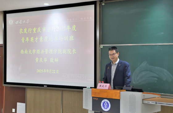 黄庆华副经理代表承办单位致辞。黄庆华对农发行重庆市分行的信任与支持表示感谢,对学员们来校学习表示诚挚欢迎。黄庆华介绍了公司团队建设、团队队伍、办学条件、以及本次培训班的课程安排,并向学员提出三点希望:一是希望大家珍惜学习机会,主动提升自我能力;二是希望大家恪守纪律规矩,自觉维护组织形象;三是希望大家加强横向沟通,持续强化组织凝聚力。