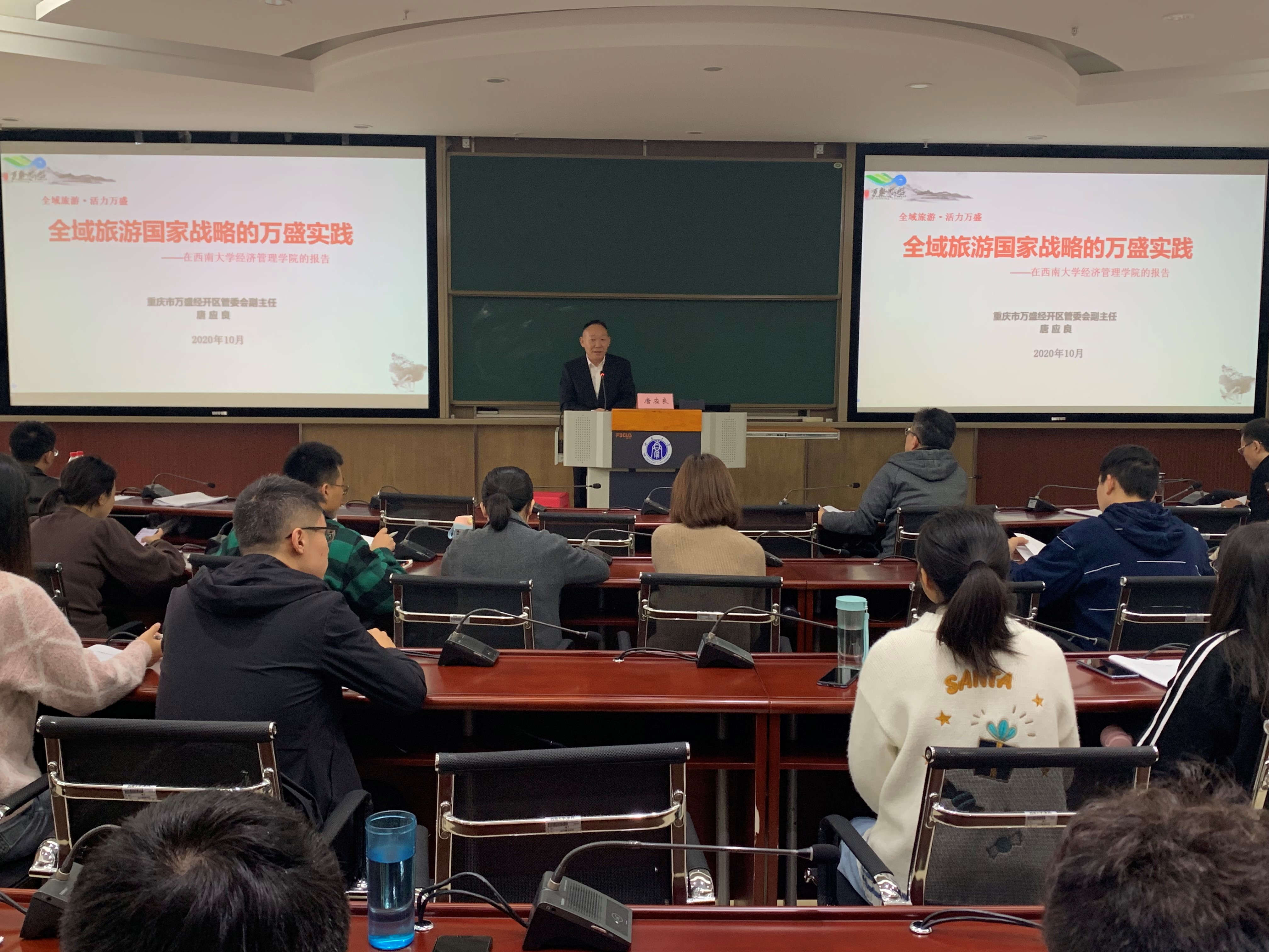 通过专题报告,2020级新生对全域旅游、文旅融合的深刻内涵以及国家全域旅游示范区创建的推进模式、长江三峡文旅融合发展路径等热点问题有了全面的认知与理解,深感受益匪浅。