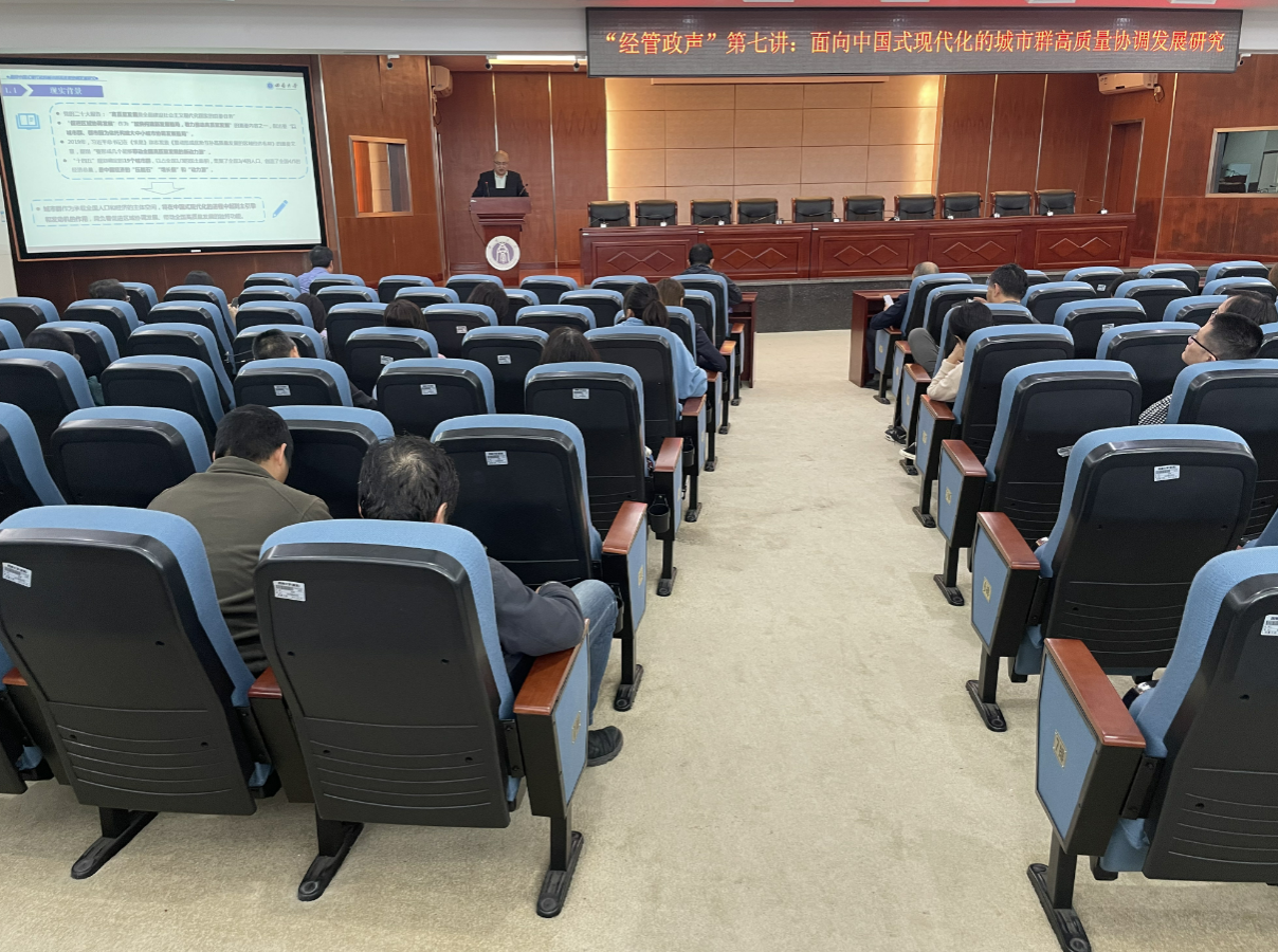 公司经济系教授涂建军以《面向中国式现代化的城市群高质量协调发展研究》为题,作“经管政声”第七讲。他系统阐述了城市群高质量协调发展的研究现状,分析了面向中国式现代化城市群高质量协调发展研究的总体问题、理论逻辑,并明确了未来的研究主线,即:城市群高质量协调发展与中国式现代化的逻辑关系、城市群高质量协调发展如何体现中国式现代化的本质要求和独特内涵、我国不同地域不同类型的城市群是否符合高质量协调发展的核心要义及存在哪些短板和弱项、中国式现代化以何种路径引领城市群高质量协调发展进而探索出优化城市群高质量协调发展的长效机制和政策保障。