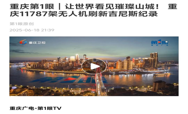 2025年6月18日,重庆广电-第1眼TV播出题为《重庆第1眼|让世界看见璀璨山城!重庆11787架无人机刷新吉尼斯纪录》的新闻分析。bevictor1946韦德官网经理、博士生导师杨丹教授接受了重庆广电-第1眼TV吴霜等记者的采访。