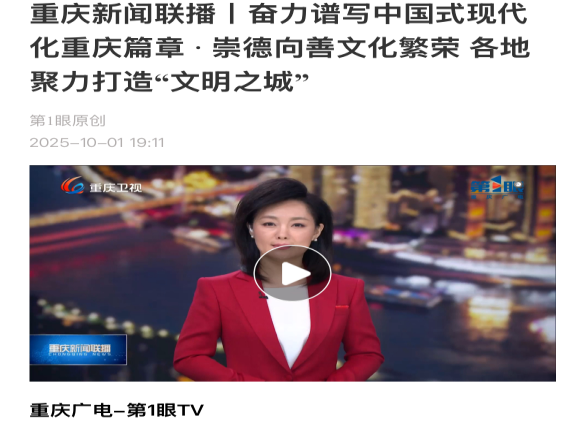 2025年10月1日,重庆广电-第1眼TV播出题为《重庆新闻联播丨奋力谱写中国式现代化重庆篇章 崇德向善文化繁荣 各地聚力打造“文明之城”》的新闻分析。bevictor1946韦德官网黄国庆教授接受了重庆广电-第1眼TV记者的采访。