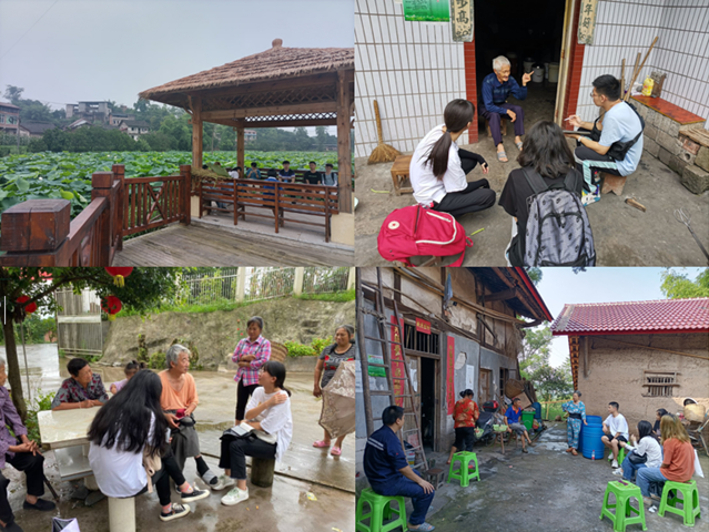 图3 调研师生在睦和村委和农户家中一对一访谈