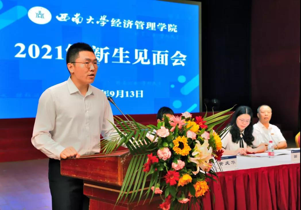 研究生新生代表贺文瑾深情回忆了本科四年在西大学习生活的美好瞬间,并以饱满的热情展望了未来三年的研究生生活,她表示要坚定学术理想,树立家国情怀;增强学术能力,提升专业素养;保持学习热情,展现良好风貌,努力活出卓越与非凡,活出充实与精彩。
