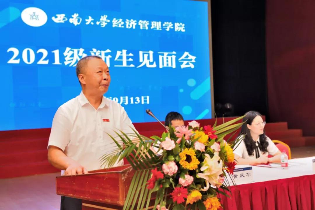 在校生代表、2018级工商管理专业本科生耿飚结合自己在西大三年,从兴奋、迷茫到探索、收获的成长历程,分享了个人的经验和感悟:哪怕负重千斤,也要逆风前行;选择拥抱忙碌,奋斗永不停息;把握眼前机会,莫要浪费光阴,并鼓励大家要主动迎接挑战,成长过程才会变得轻松愉快。