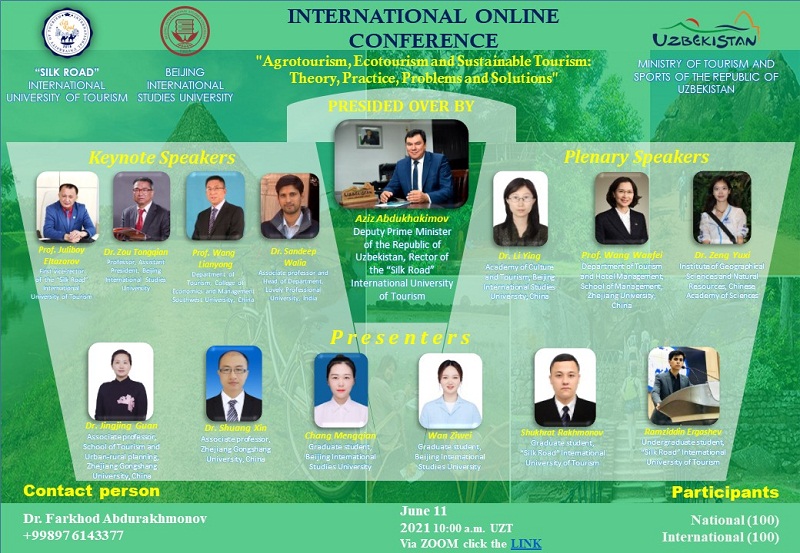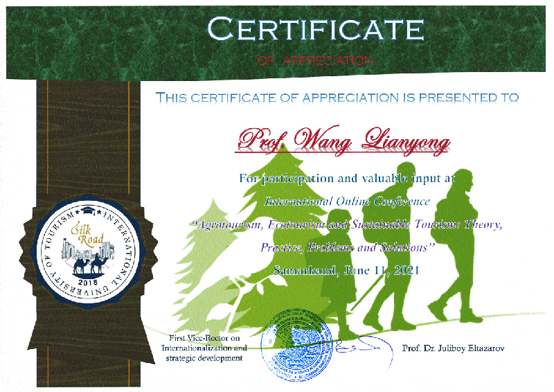 6月11日,乌兹别克斯坦丝绸之路国际旅游大学和中国北京第二外国语公司联合发起“农业旅游、生态旅游和可持续旅游——理论、实践、问题与解决方案”国际学术论坛。乌兹别克斯坦共和国副总理Aziz Abdukhakimovz致开幕词。乌方的丝绸之路国际旅游大学董事长Juliboy Eltazarov教授、中方的北京第二外国语公司旅游公司经理邹统钎教授、bevictor1946韦德官网王连勇教授做主旨演讲。