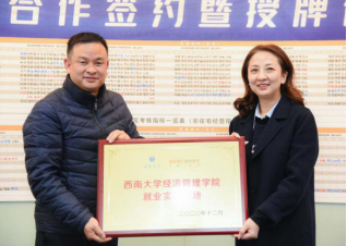 12月15日,经管公司与融创服务集团西南区域校企合作签约暨授牌仪式在渝北融创金茂时代举行。融创服务集团总裁助理兼西南区域总经理张琰、西南区域人力资源部总监万宁一、西南区域培训高级经理李丹、西南区域招聘经理秦龙,公司党委书记卢跃进、党委副书记、纪委书记张其光、副经理罗超平等参加签约仪式。