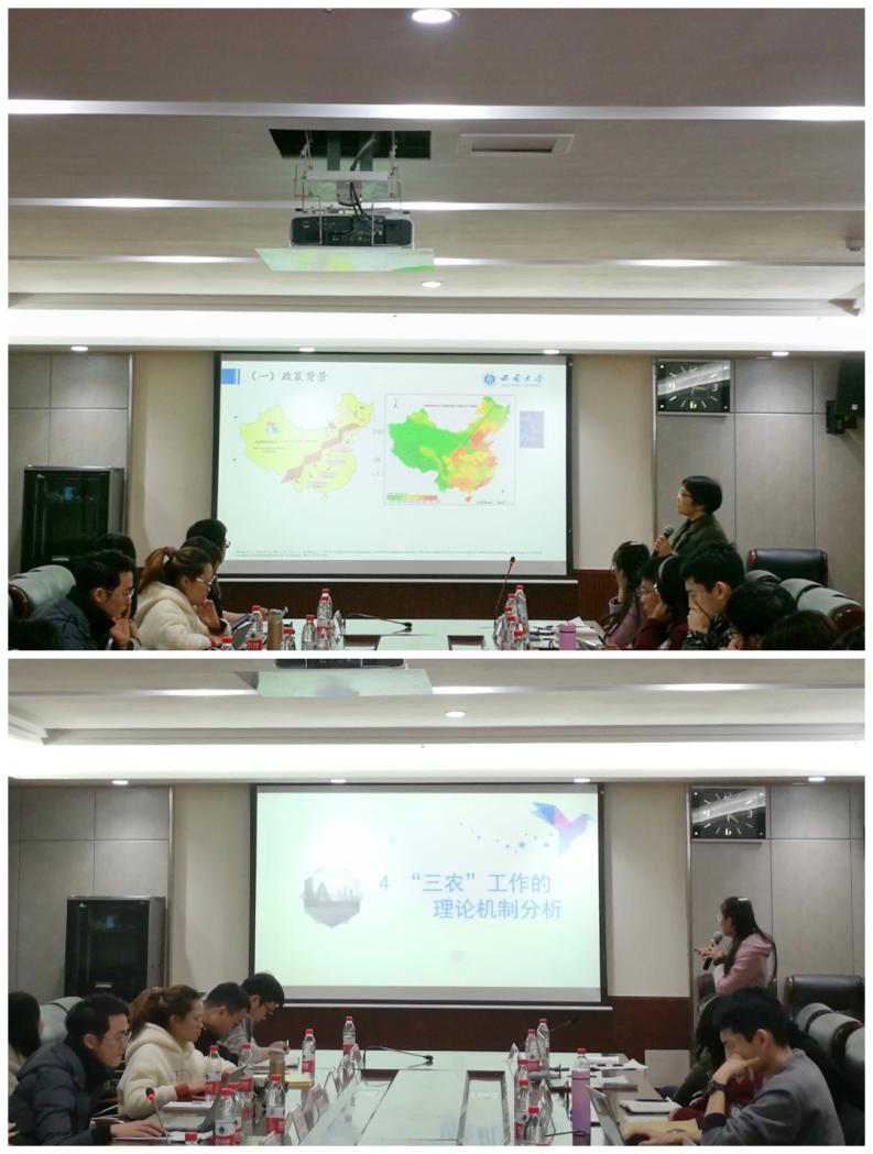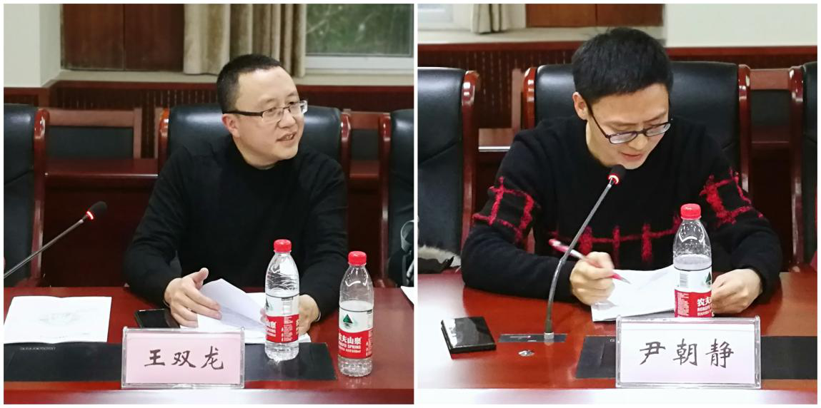 王双龙、尹朝静两位老师对两位同学的论文进行认真分析和点评,他们对两位同学的论文从论文题目的凝练,摘要和引言的撰写,论文主体部分方法的使用、模型的建构、数据的来源与使用等一一提出了有针对性的意见和建议。认为在论文写作中要规范论文写作格式,注意论文题目、摘要与引言之间的契合和关联性,同时要重视对理论的梳理和逻辑判断。