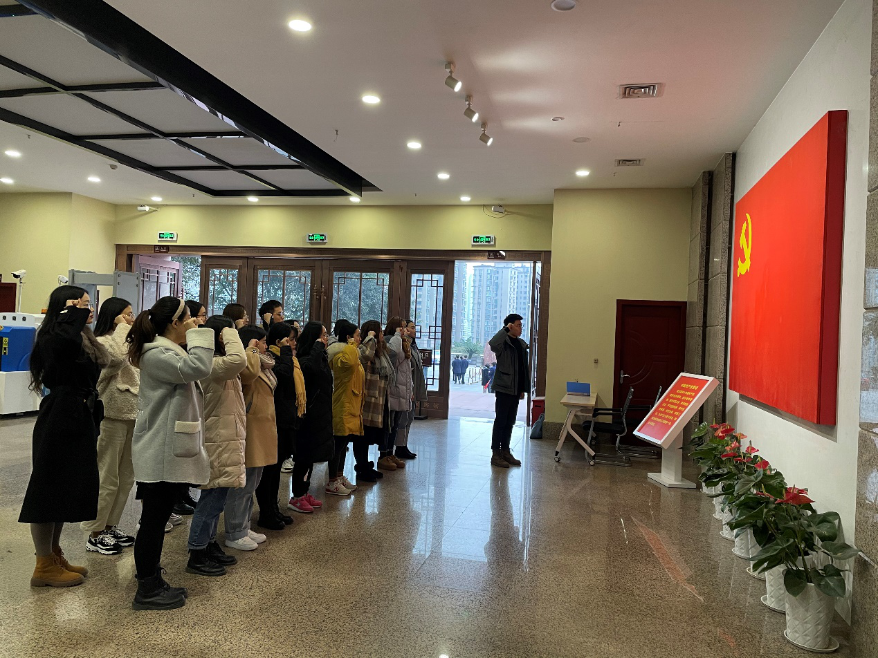 最后,在红岩革命纪念馆内,各位党员面对党旗重温入党誓词:我志愿加入中国共产党,拥护党的纲领,遵守党的章程……铮铮誓词回荡在革命纪念馆内。