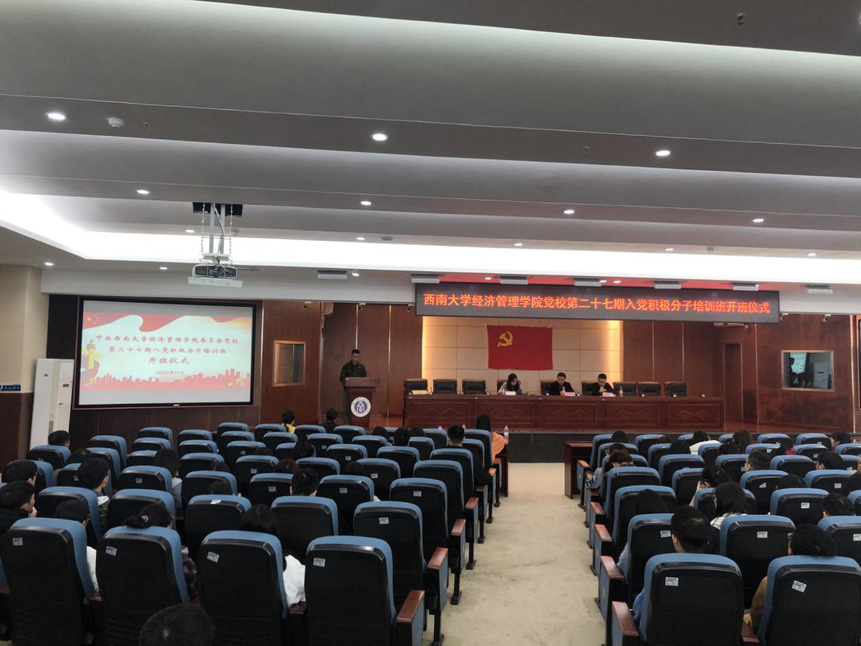 1114午,公司党校第二十七期入党积极分子培训班开班仪式在公司B401报告厅举行。公司党委书记卢跃进,党委副书记、纪委书记张其光,党委副书记田丽,本期培训班班主任195名学员参加了开班仪式。仪式由公司党委组织员钱璐主持。
