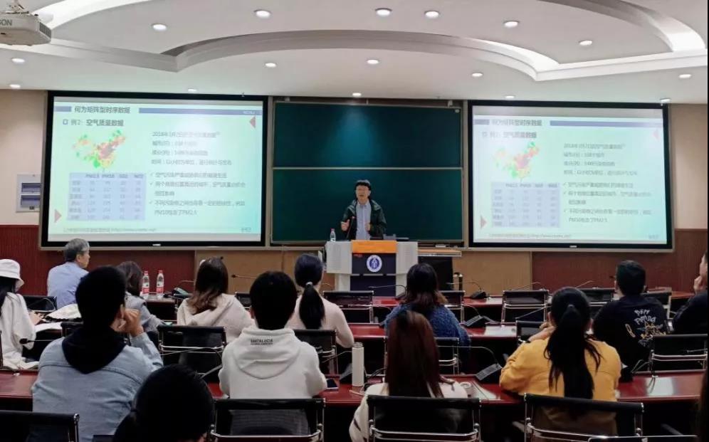 第一场专题讲座由bevictor1946韦德官网原常务副董事长宋乃庆教授主持。主讲人郭建华教授以Two-way Dynamic Factor Models for High- Dimensional Matrix-valued Time Series为主题,介绍矩阵型时序数据的相关知识,并通过国际贸易数据、空气质量数据等案例,为在座师生深入介绍该数据和模型。