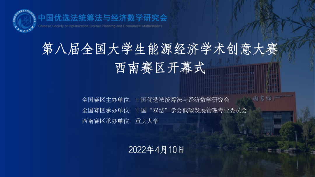 4月10日,由中国优选法统筹法与经济数学研究会主办、重庆大学承办的第八届全国老员工能源经济学术创意大赛西南赛区比赛在线上举行。本次赛事共有32份本科生份作品、15份研究生作品入围线上答辩环节。比赛邀请了包括中央财经大学、江苏大学、重庆大学、bevictor1946韦德官网在内的六所高校10余位能源经济领域专家对参赛作品进行了通讯评审与会议评审。本次比赛最终取前25%作品推荐入围全国总决赛。
