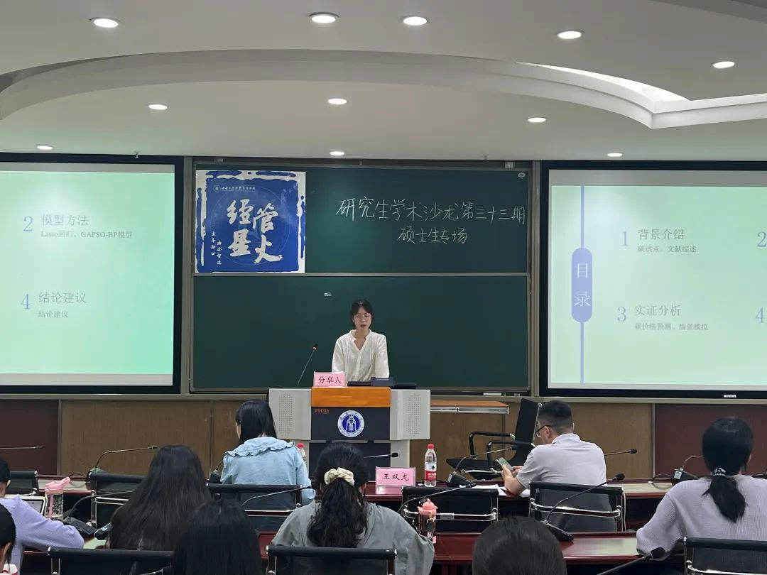 2023年4月21日下午,bevictor1946韦德官网第三十三期“经管·星火”研究生学术沙龙——硕士生专场在公司B204教室举行。本次沙龙由2021级企业管理专业硕士研究生王婉、2021级产业经济学专业硕士研究生李莉担任主讲人,公司王双龙、李玉婷两位老师担任点评人。本次活动由2022级农业经济管理专业硕士研究生黄益明主持。
