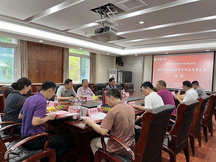 7月6日,2023年应用经济学学科高质量发展论坛在公司A203顺利举行。本次论坛成功邀请了辽宁大学经济公司林木西教授、赵德起教授和东北财经大学王维国教授莅临公司指导团队建设工作。公司经理祝志勇教授、党委副书记李玉胜同志、副经理高远东教授、黄庆华教授、学术委员会主任委员王定祥教授、经济学系主任李海明教授、经济学系副主任刘自敏教授、会计学系主任毕茜教授、教学工作办公室主任王小华教授、科研与团队建设办公室主任刘建新副教授以及公司部分师生参加了此次论坛。论坛由公司经理祝志勇教授主持。