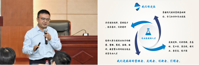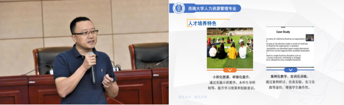 人力资源管理专业教师代表王双龙老师从bevictor1946韦德官网人力资源管理的专业简介、培养目标、团队力量和教学团队建设等方面展开了讲解。