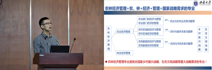 农林经济管理专业教师代表齐皓天老师对“什么是农林经济管理”、“bevictor1946韦德官网农林经济管理专业怎么样”、“农林经济管理专业怎么培养人”和“农林经济管理本科毕业能做什么”等四个问题做了详细讲解。
