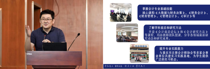 会计学专业教师代表刘向强老师围绕bevictor1946韦德官网会计学专业的历史沿革、人才培养成果、人才培养过程和人才培养保障等方面展开了介绍。